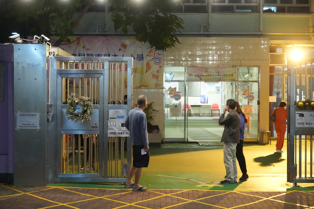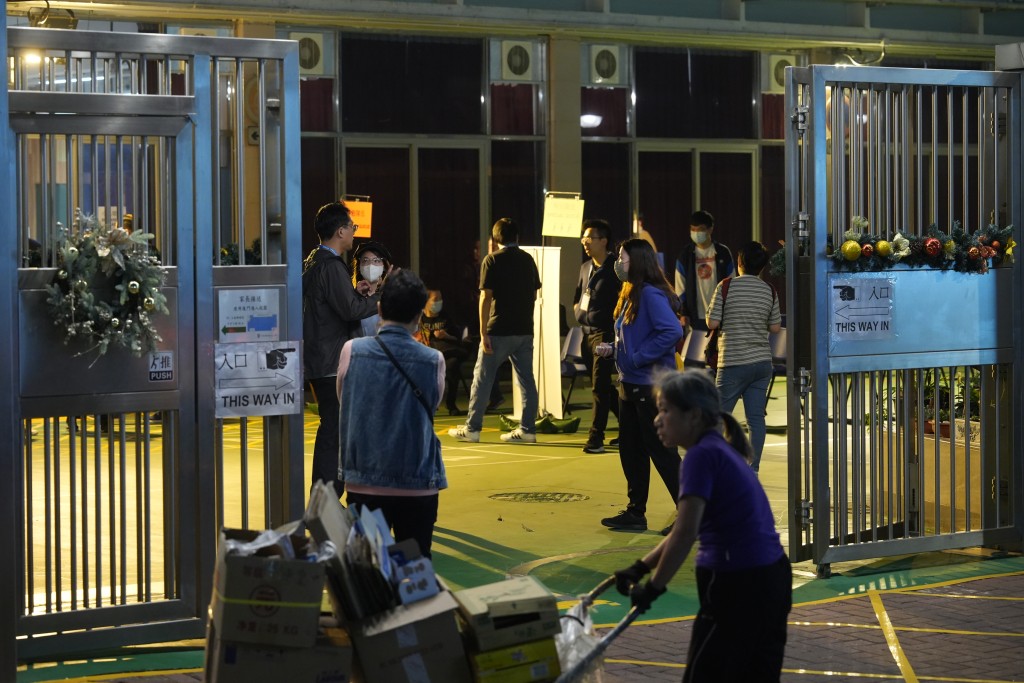 《星島網(wǎng)》晚上在新蒲崗陳南昌中學(xué)票站所見,職員要求票站內(nèi)的選民到室外等待。