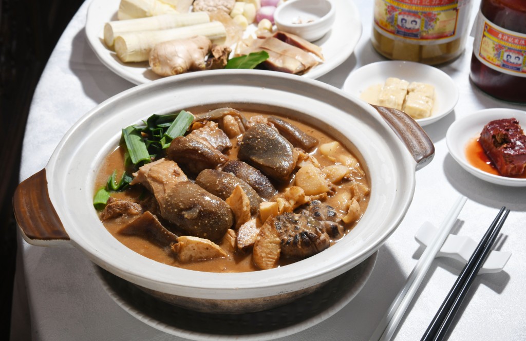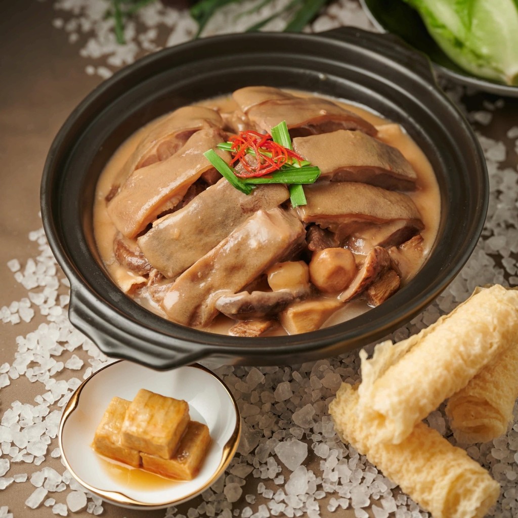位于沙田凱悅酒店的沙田18,其著名北京烤鴨及玫瑰露叉燒豬油撈飯深得城中老饕喜愛。如今推出的冬日期間限定菜式——古法枝竹雙冬羊腩煲亦是上乘之作。特別選用了12斤至15斤重的原只黑草羊,再取其腩位制作,圖它入口軟腍。更連同其他惹味配菜,如冬菇、冬筍、馬蹄一同以慢火燜足4小時,完全入味。記得要蘸上特調(diào)的腐乳醬料來吃,倍添惹味。