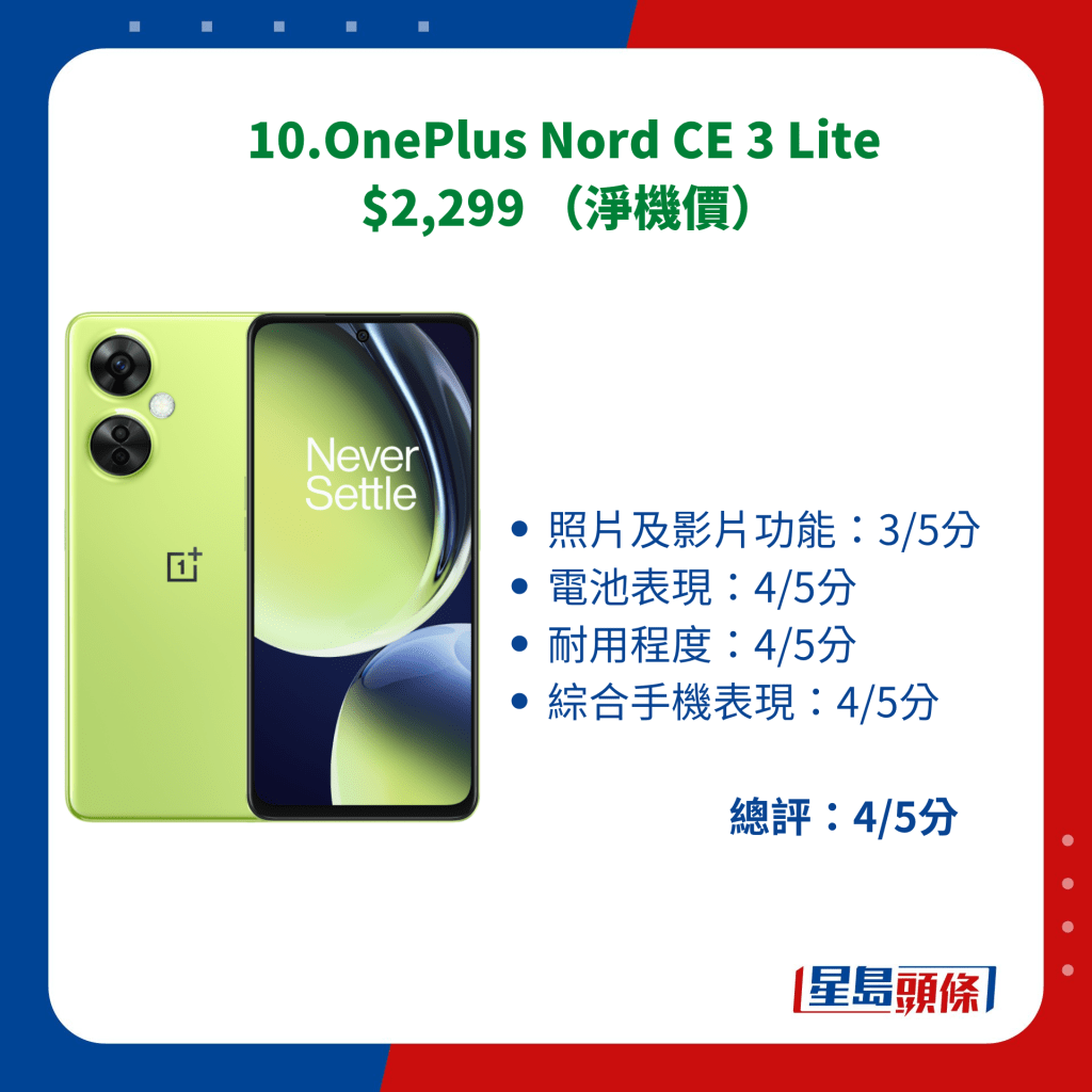 消委會測試10大高分智能手機(jī) | $4,000以下(5G型號):