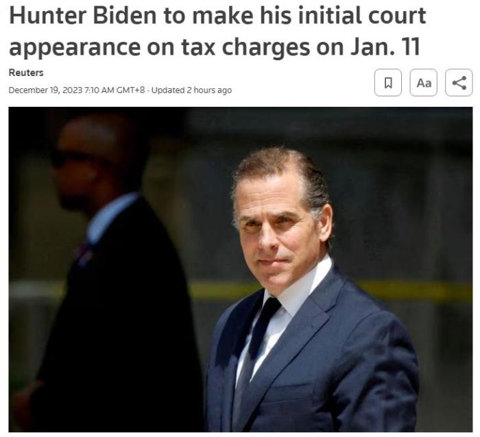 拜登兒子亨特2024年1月就稅務(wù)指控,將在洛杉磯首次出庭