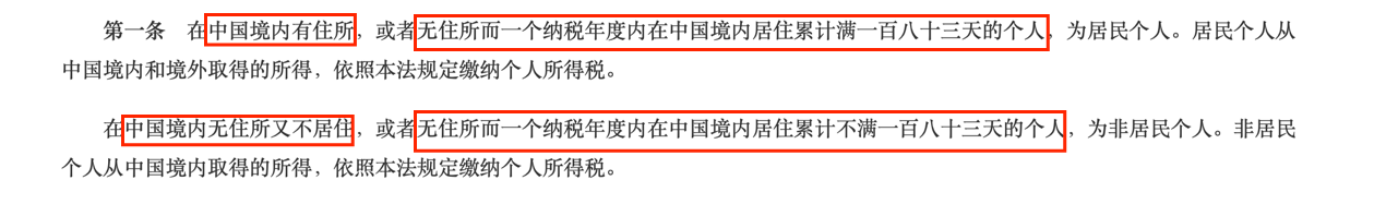 ▲《中華人民共和國個人所得稅法》第一條關于內地居民界定。中國政府網