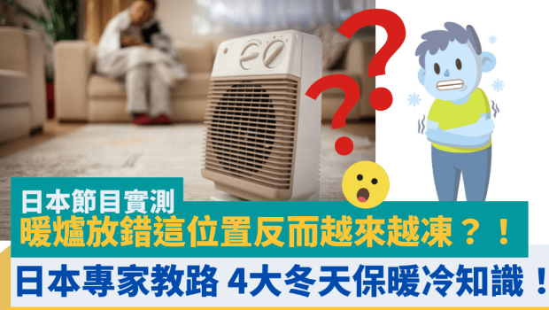 近日氣溫都只是徘徊在11、12°C之間,早晚持續(xù)寒冷且天氣干燥,天文臺(tái)預(yù)料寒冷天氣將持續(xù)至圣誕節(jié),要渡過(guò)冷冰冰的寒冬,不少人選擇宅在家中,開(kāi)著暖爐、躲在被窩中煲劇就最好不過(guò)。但有時(shí)暖風(fēng)機(jī)放太遠(yuǎn)又覺(jué)凍、放太近又會(huì)感到太熱或皮膚干燥。日本就有節(jié)目進(jìn)行實(shí)測(cè),原來(lái)暖爐放錯(cuò)在1個(gè)位置反而會(huì)越來(lái)越凍!到底放暖風(fēng)機(jī)的最佳位置在哪里? 閱讀下文就知道了。
