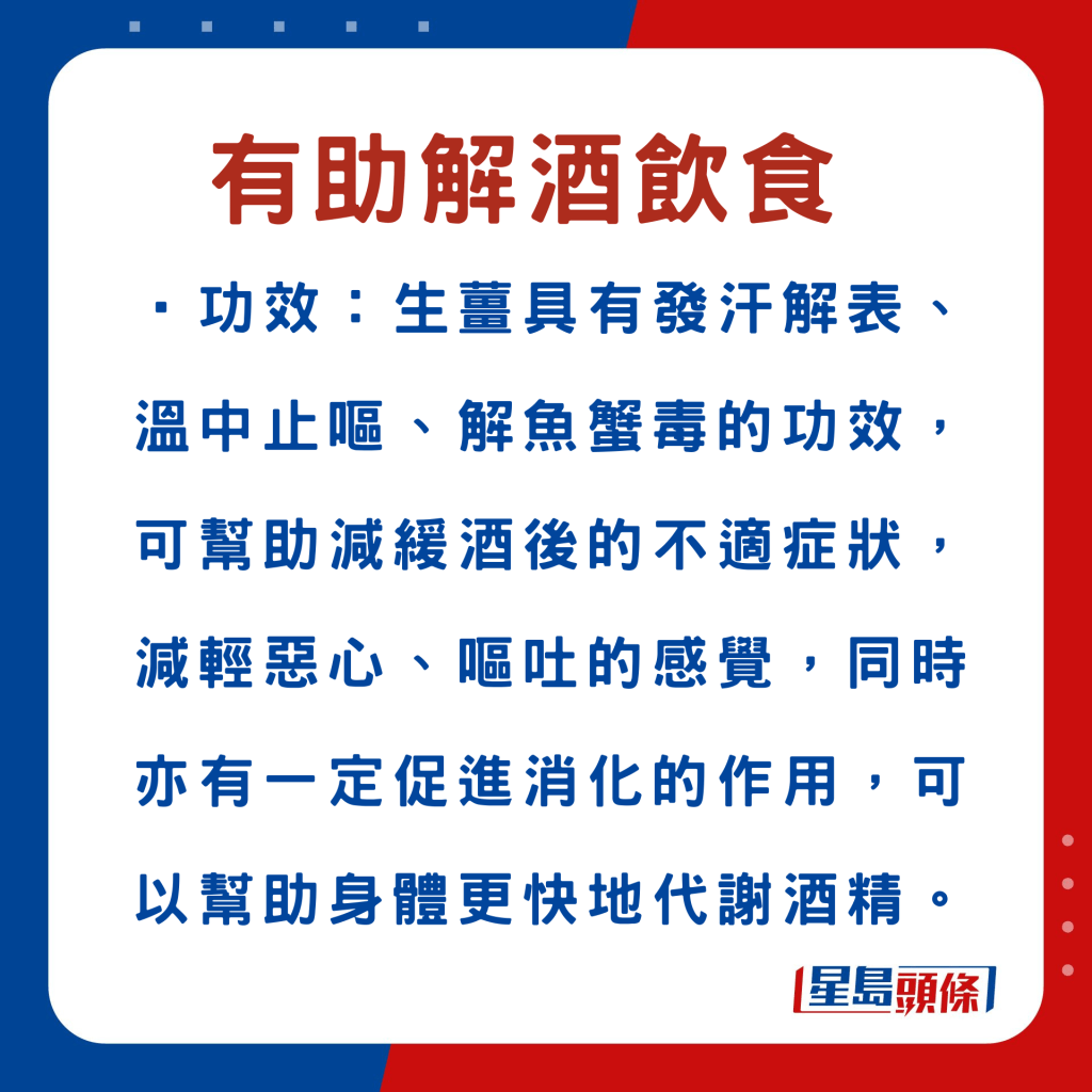 酒為濕熱之最,過量飲用,很易令人體積存濕熱邪毒,故酒后最好適量進食有助清泄酒毒的食材,以減輕肝臟的負擔(dān)。