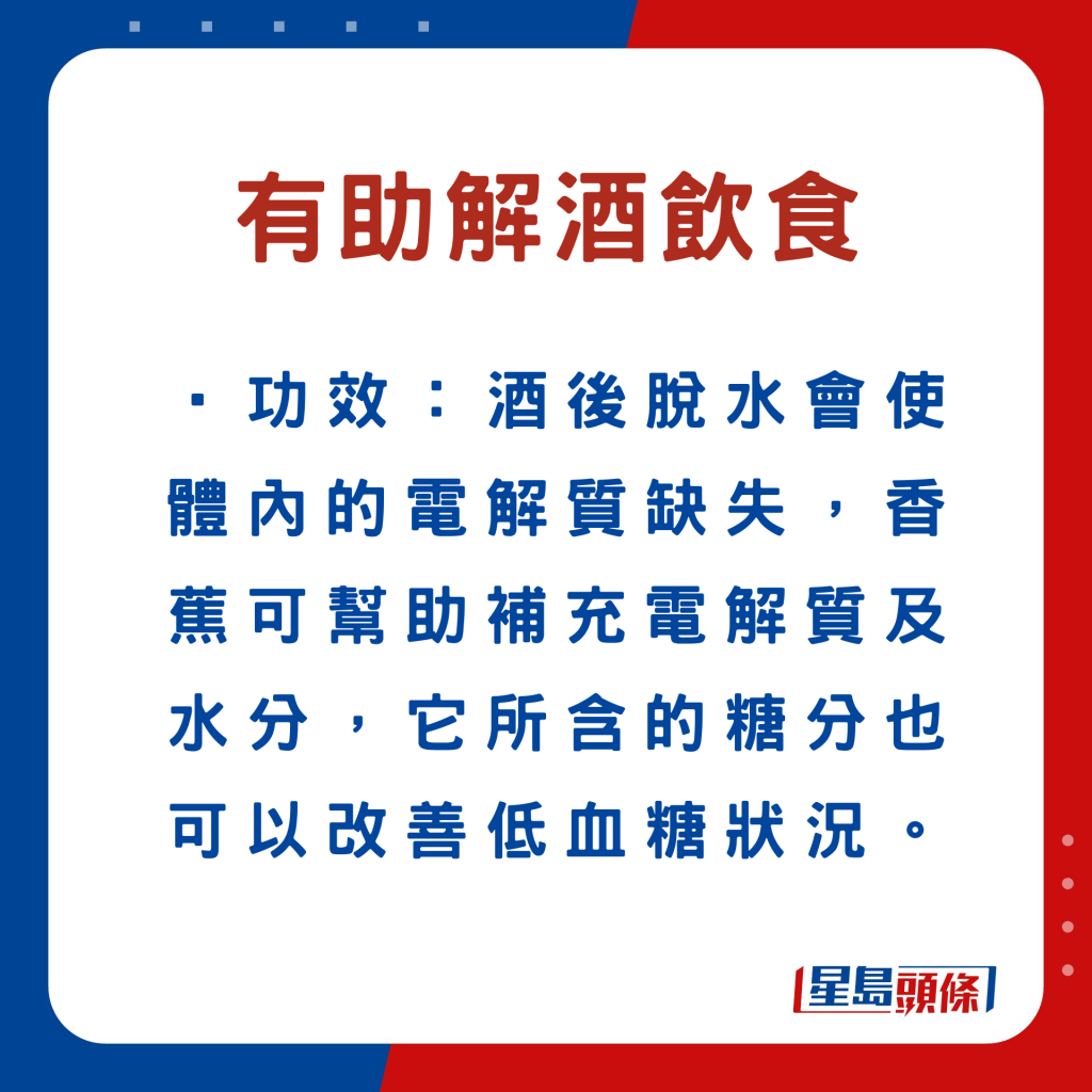 解酒推介5種食物 吃香蕉可防宿醉/嘔吐/頭暈?