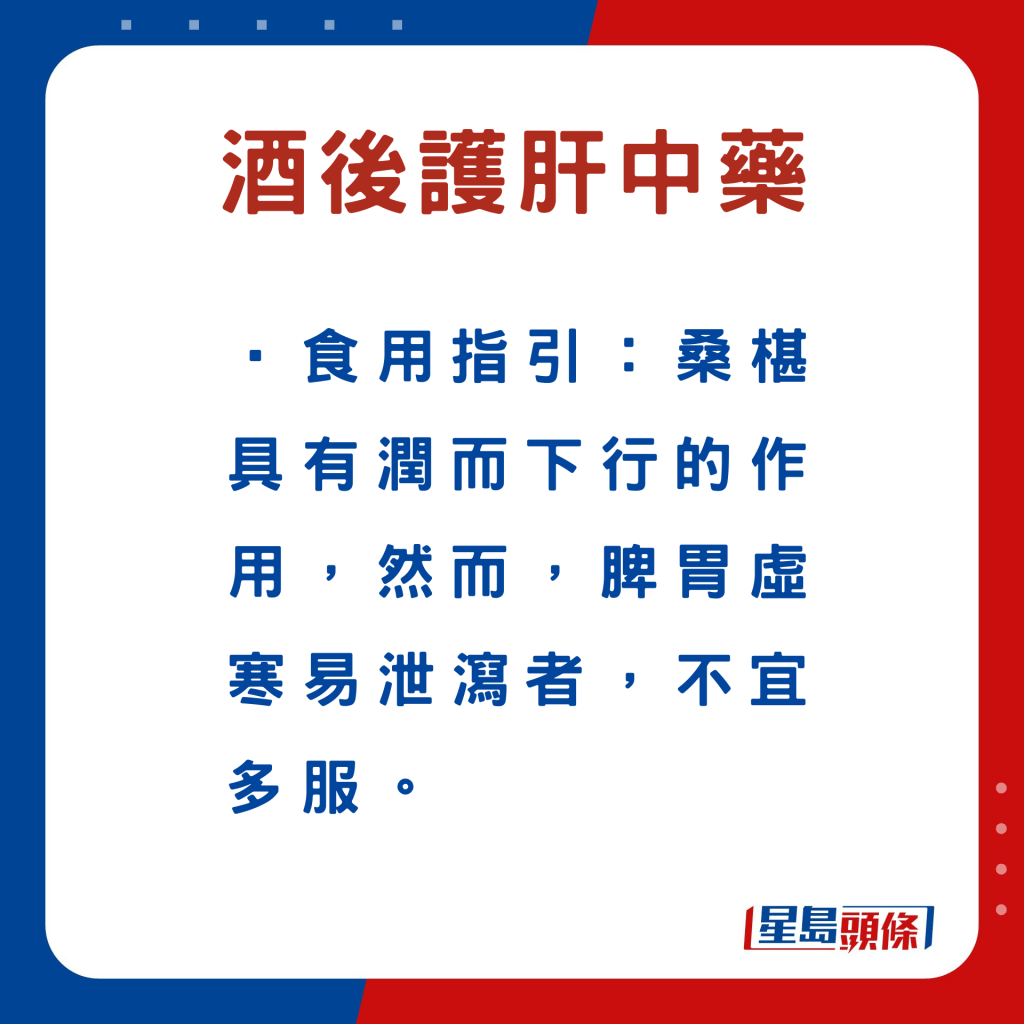 飲酒過后,尤其是宿醉不適、飲酒量較大人士,建議事后借助食療,盡快清除酒類的濕熱,并鞏固肝臟,強化其泄瀉肝火的機能,以收健肝、護肝之效。