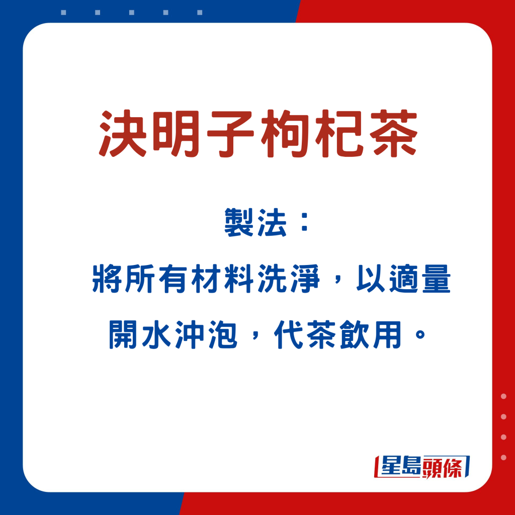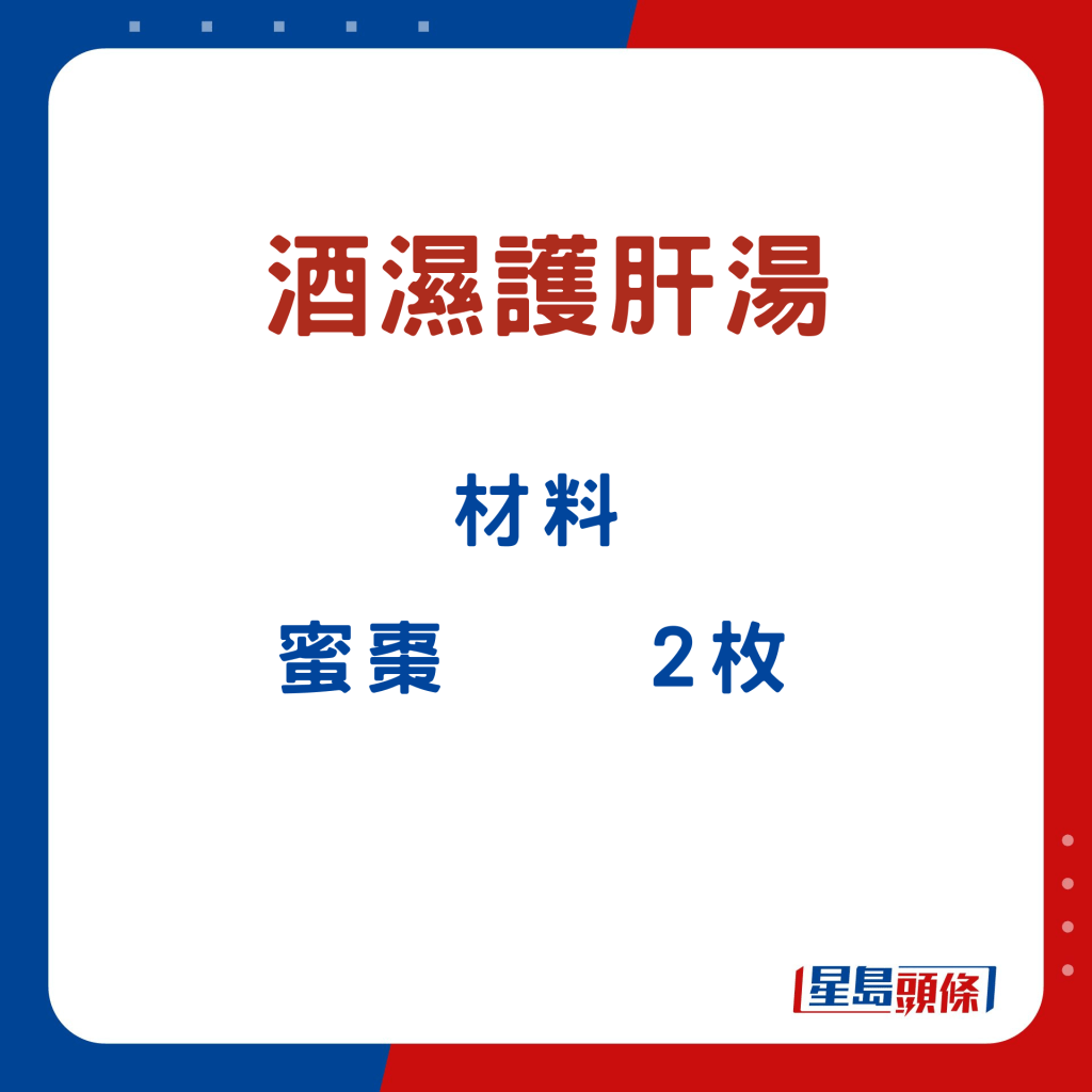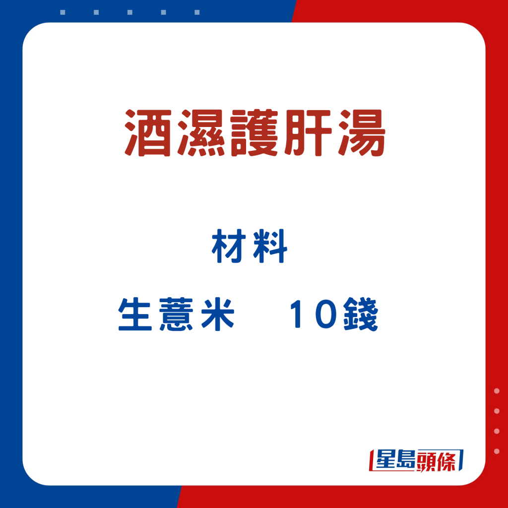張醫(yī)師指,沙參玉竹玉米須湯,可補氣健脾、平肝利水。酒濕護肝湯,能疏肝解毒,健脾祛濕。除了湯水,他亦推介決明子枸杞子茶,制作快捷簡易,直接以熱水沖泡即可;于酒后飲用,可護肝之余,更能補益腎臟、清肝明目。
