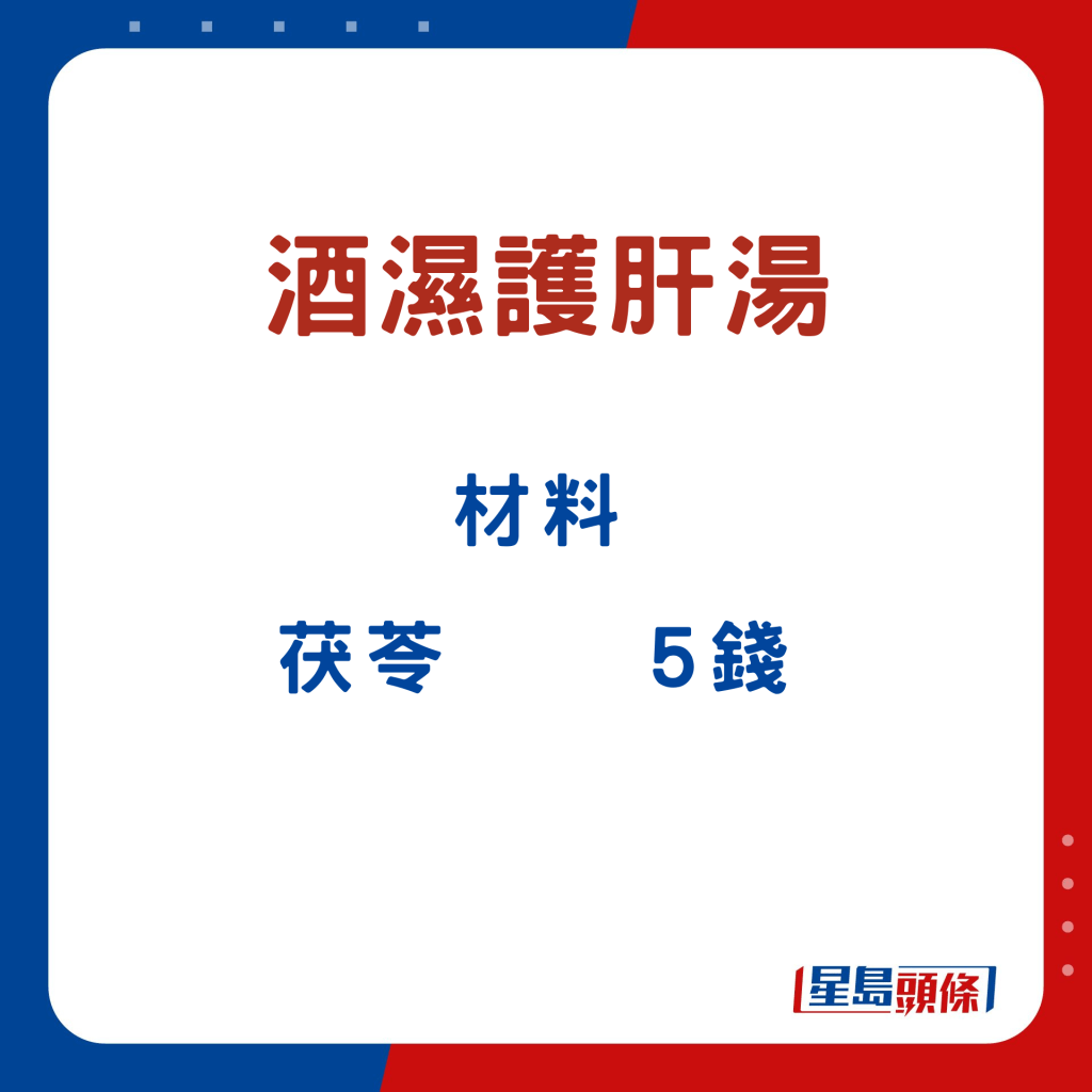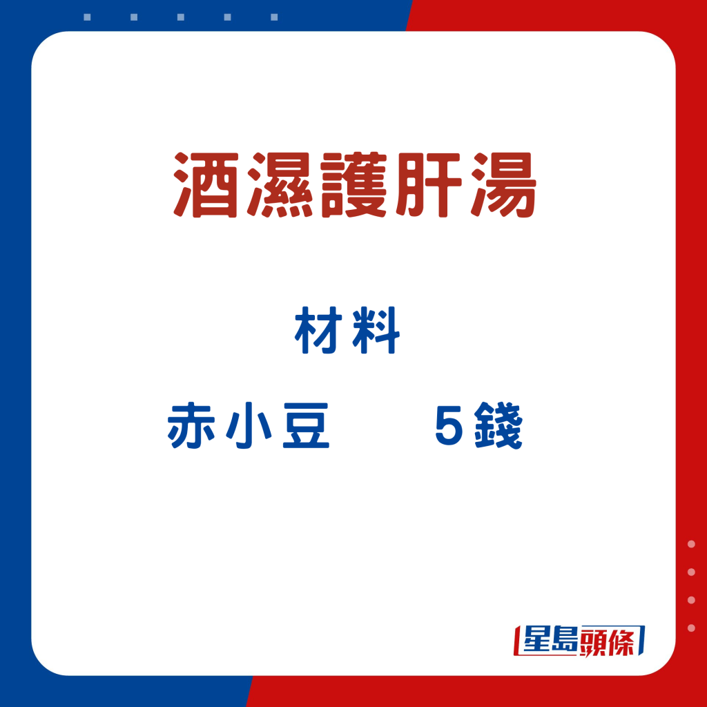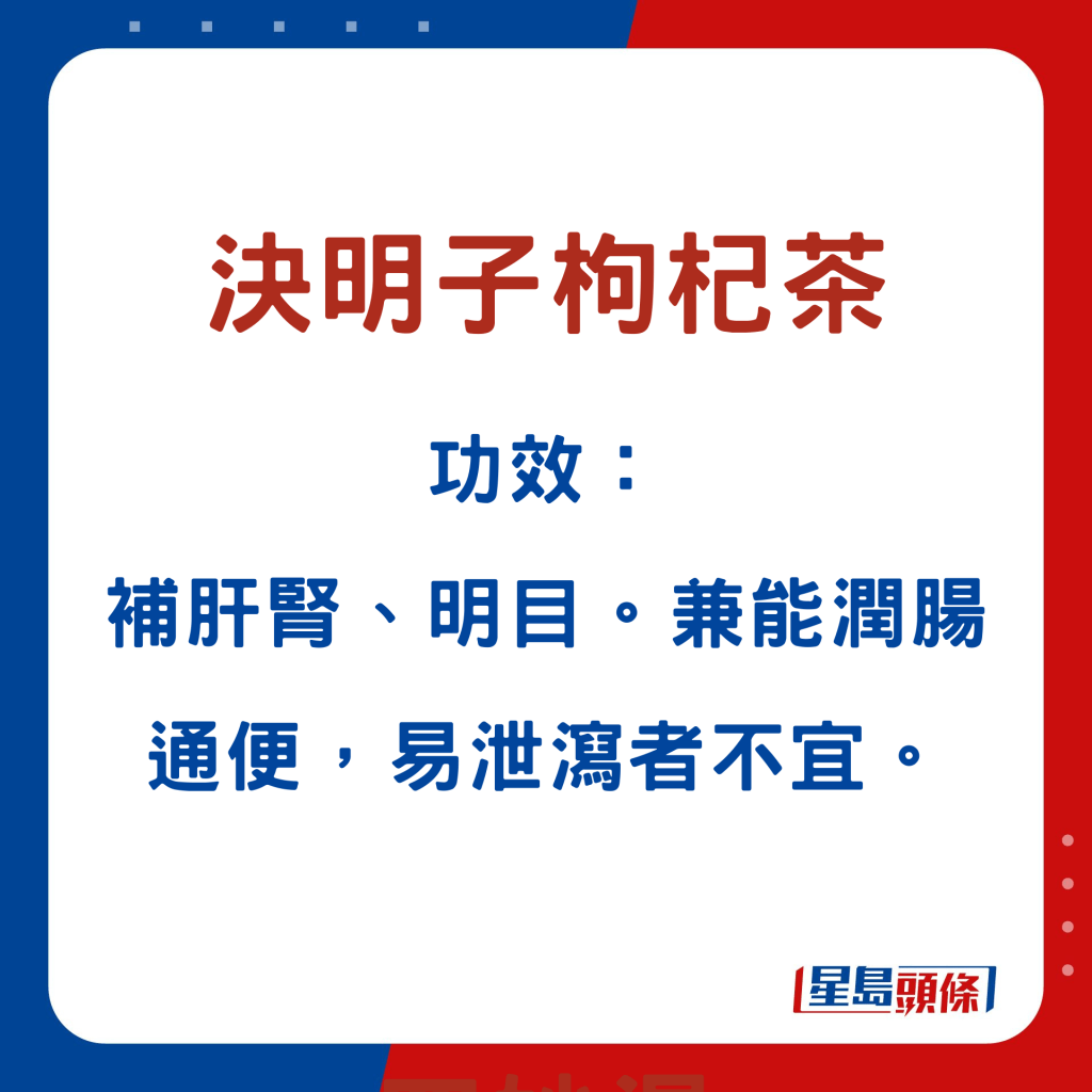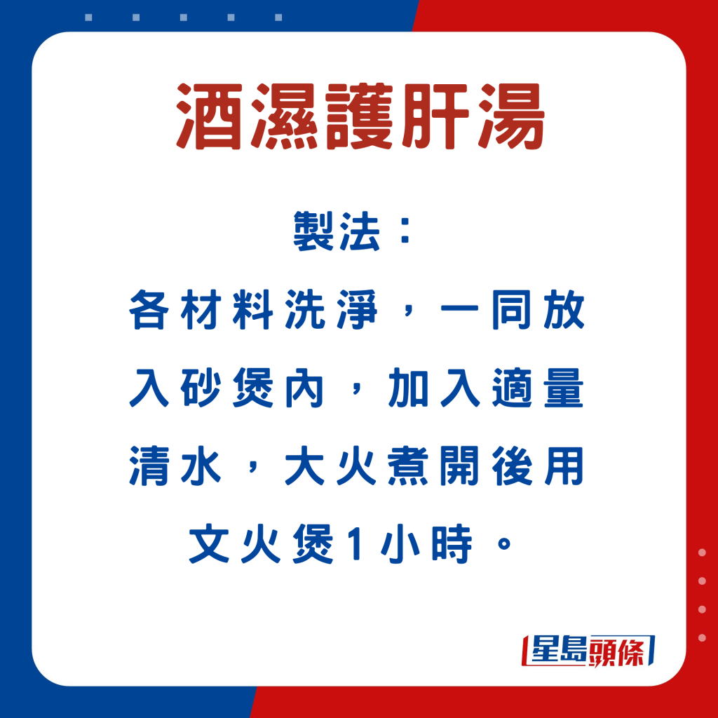 張醫(yī)師指,沙參玉竹玉米須湯,可補氣健脾、平肝利水。酒濕護肝湯,能疏肝解毒,健脾祛濕。除了湯水,他亦推介決明子枸杞子茶,制作快捷簡易,直接以熱水沖泡即可;于酒后飲用,可護肝之余,更能補益腎臟、清肝明目。