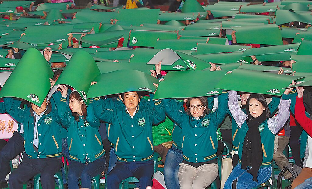 ▲賴清德(中)、蕭美琴(右二)24日出席“唱土地的歌,拼咱的希望”臺北場,與“立委”候選人及民眾一起高舉紙板拼出環(huán)島拼圖中的“美”字。中國時報