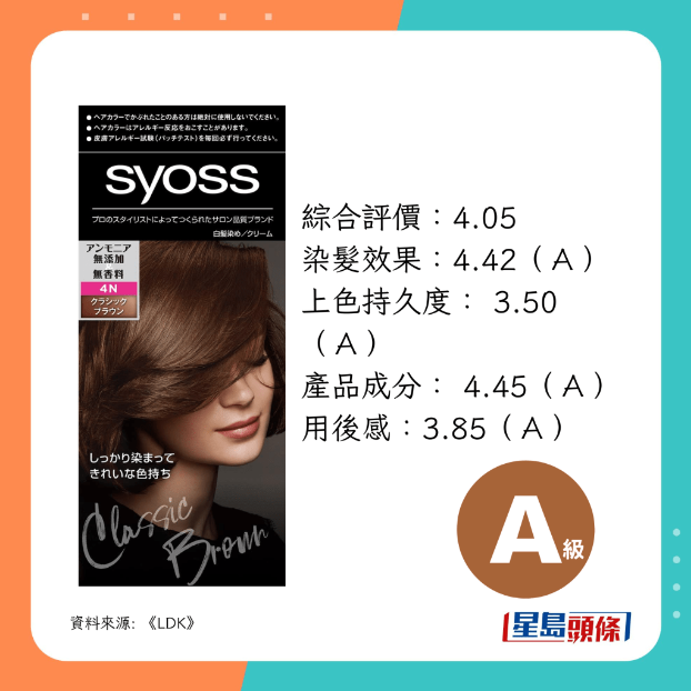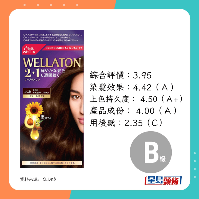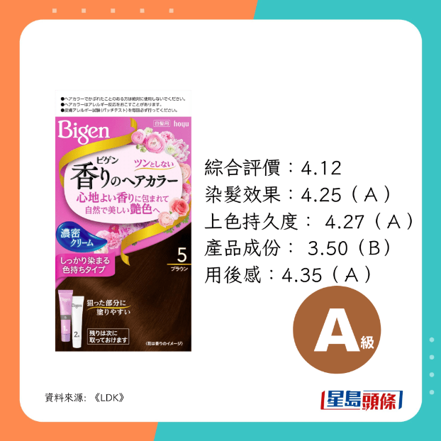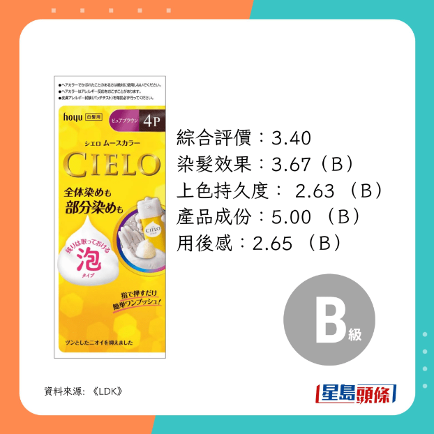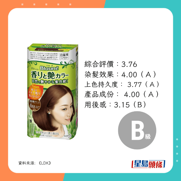 根據(jù)《LDK》白發(fā)專用染發(fā)劑的評測結(jié)果,10款染發(fā)劑之中,有5款相對出色,獲評為A級,不但染色能力佳、持久度高、含有修護(hù)頭發(fā)的成分,而且易于使用。 排名如下(由低至高):