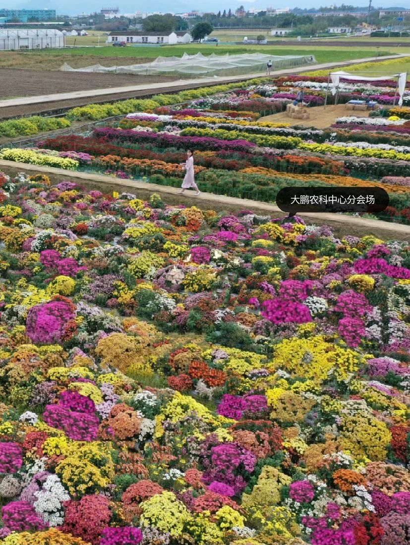 同樣位于龍岡區(qū)的大鵬中國農(nóng)業(yè)科學院深圳綜合試驗基地是另分會場,這里展區(qū)主要包括菊海拾秋、田野營集、逐花尋夢、3個室外展區(qū)及攜光呈藝的室內(nèi)展區(qū)。大家可以欣賞逾20萬株菊花外,同場更設(shè)露營市集、企業(yè)花展及藝術(shù)展演等各種文化活動,糅合藝術(shù)與自然環(huán)境。