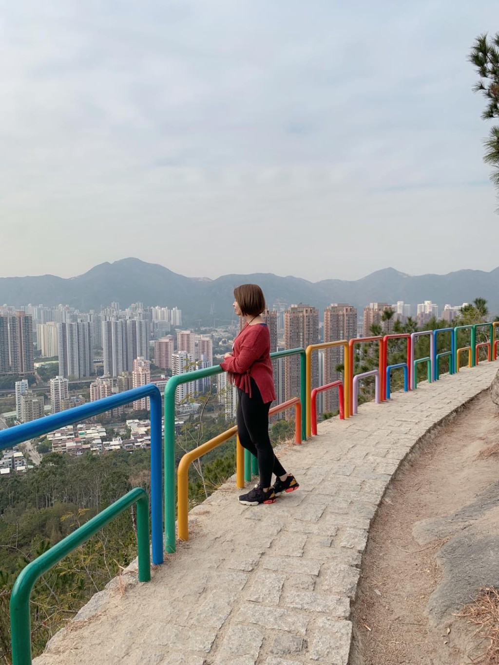 到達麥理浩徑和屯門徑的 分叉路口牌位置,往屯門徑方向再走20分鐘就會到其中一個打卡熱點「彩虹欄桿」。