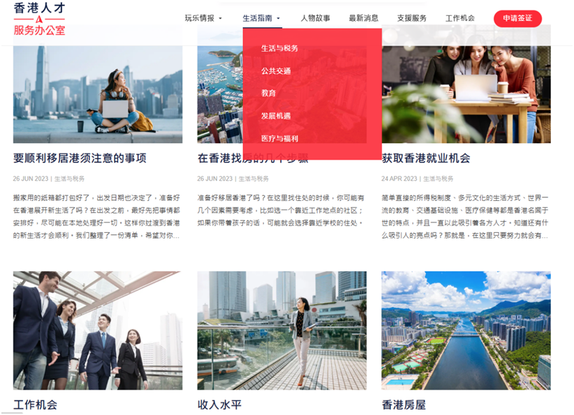 香港的高薪酬、國(guó)際平臺(tái)吸引了不少內(nèi)地人前往。為幫助人才抵港后更快適應(yīng)生活和投入工作,香港政府在2022年12月28日推出“香港人才服務(wù)窗口”,為有意到港的外來人才提供專設(shè)的一站式平臺(tái),這個(gè)“窗口”,能讓剛到港的你輕松找到香港生活、就業(yè)、游玩、租房等多方面的資訊及支援服務(wù)。