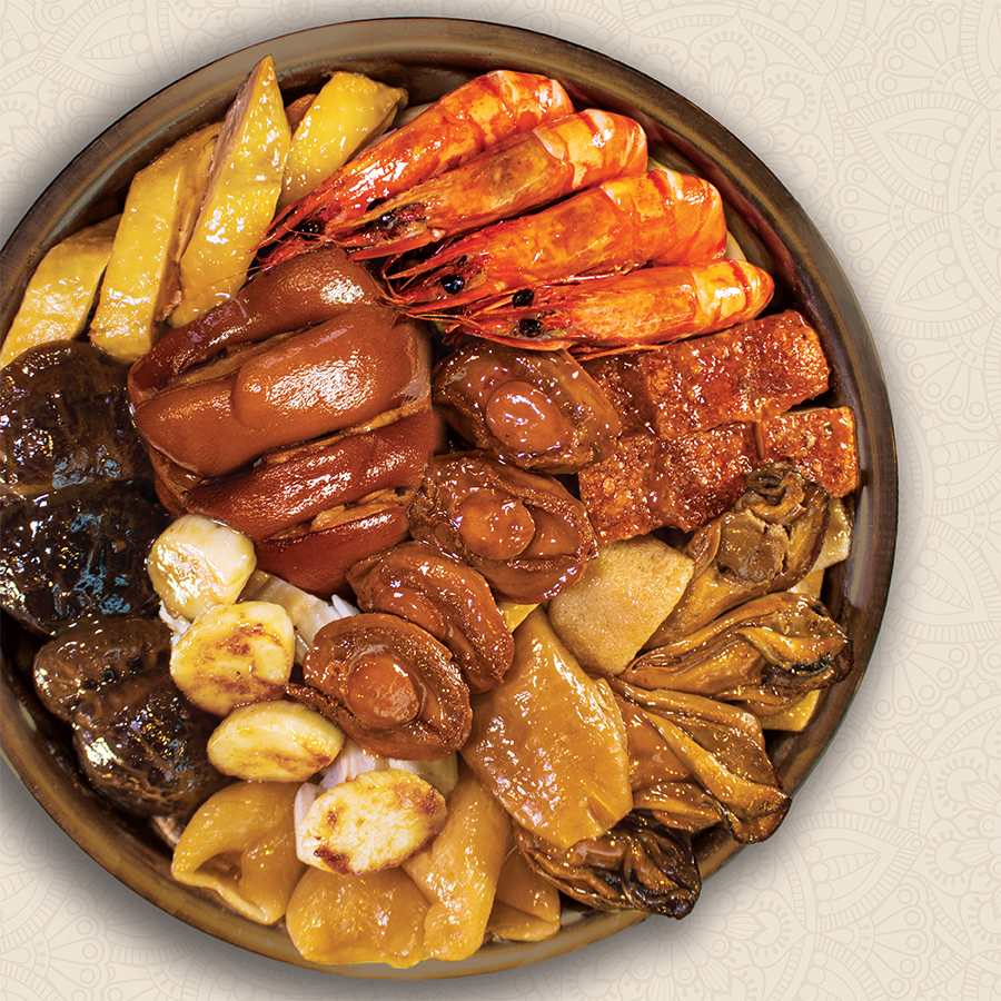 ▲樂雅軒珍寶盆菜/約6位用/$1,988、約12位用/$3,888/C,包括蠔皇原隻六頭鮑魚、花膠、海參、金蠔及宗谷元貝等,取餐前5日預(yù)訂,享9折;另訂購盆菜滿$3,000或以上,享免費(fèi)送遞服務(wù)。