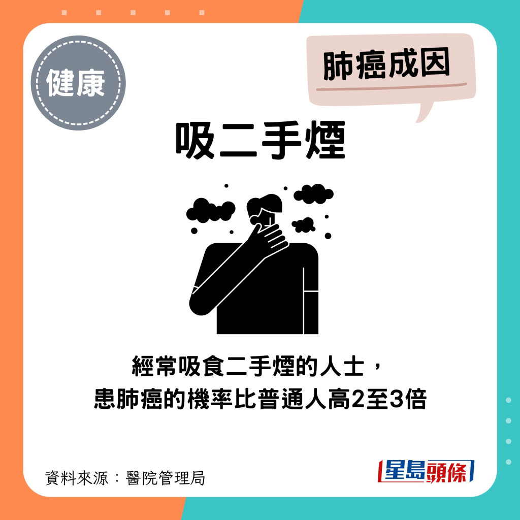經(jīng)常吸食二手煙的人士,患肺癌的機(jī)率比普通人高2至3倍