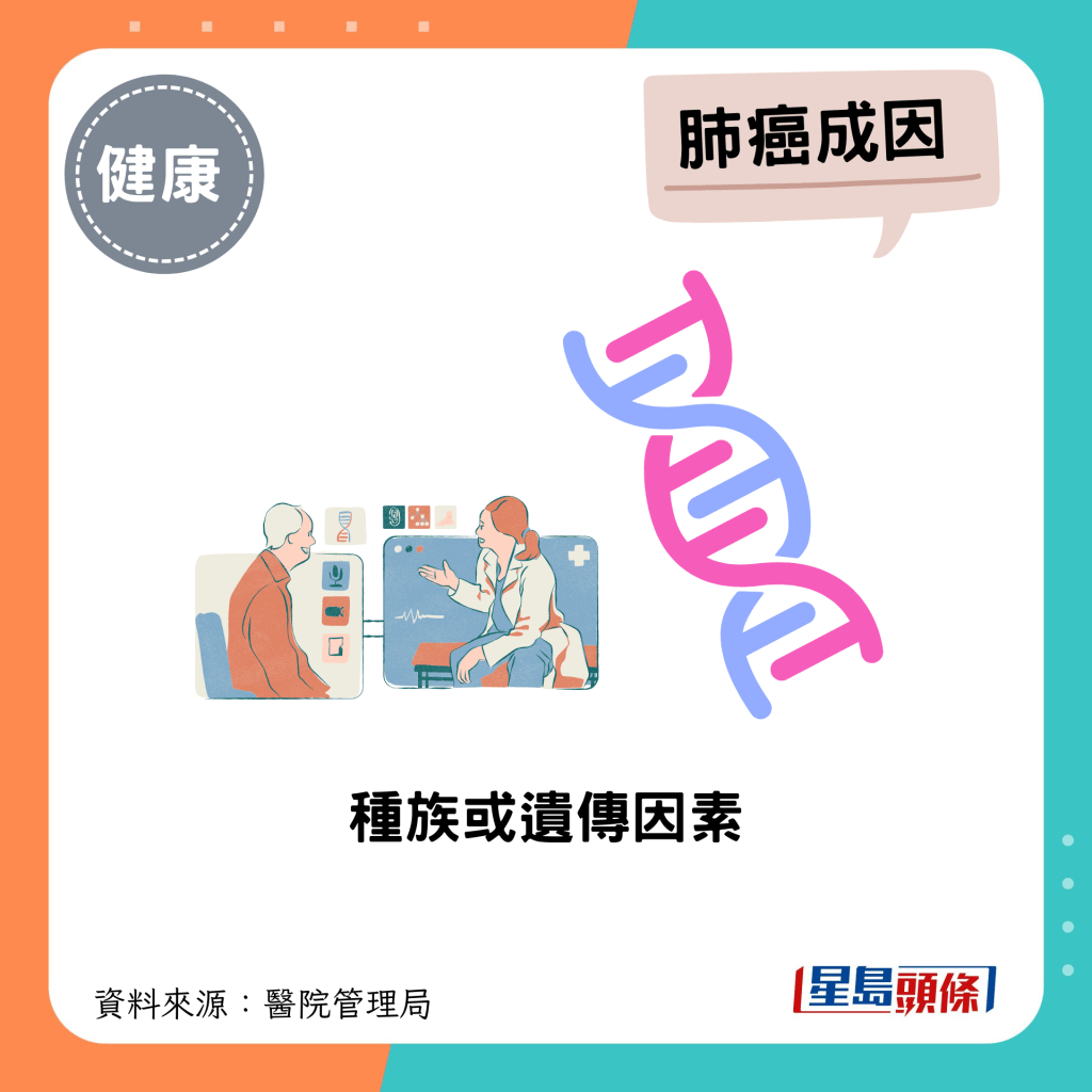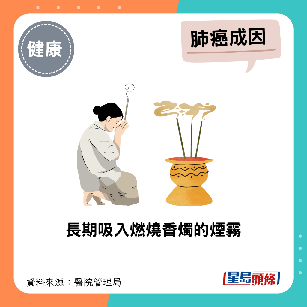 根據(jù)香港醫(yī)管局資料,肺癌是香港癌癥頭號(hào)殺手,每年新增逾4000宗病例,死亡人數(shù)約3600人。 吸煙是引發(fā)肺癌最主要原因,約90%男性肺癌患者為煙民。 此外,亦有其他因素引發(fā)肺癌。