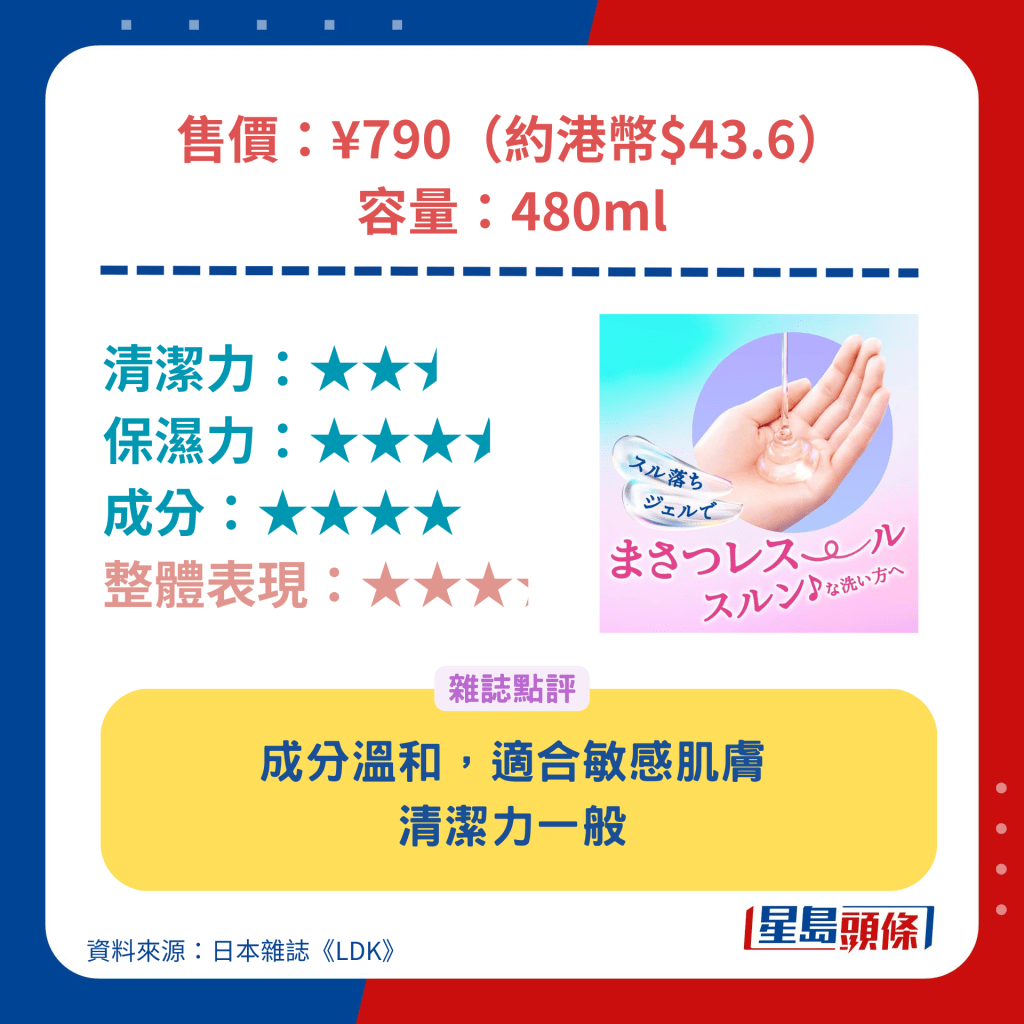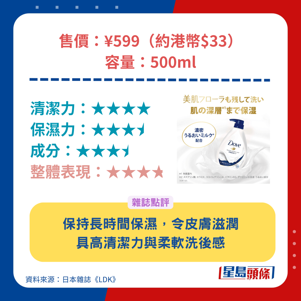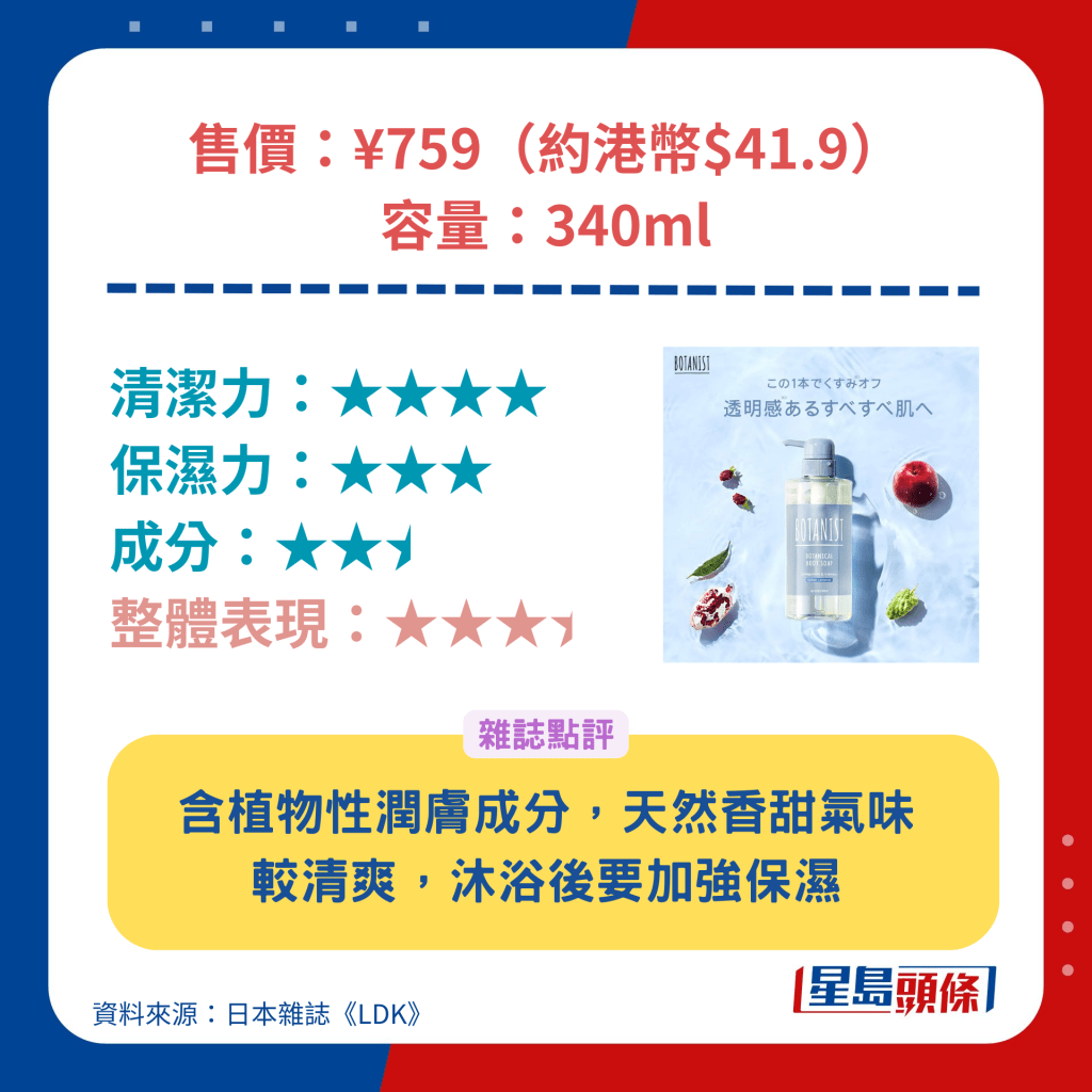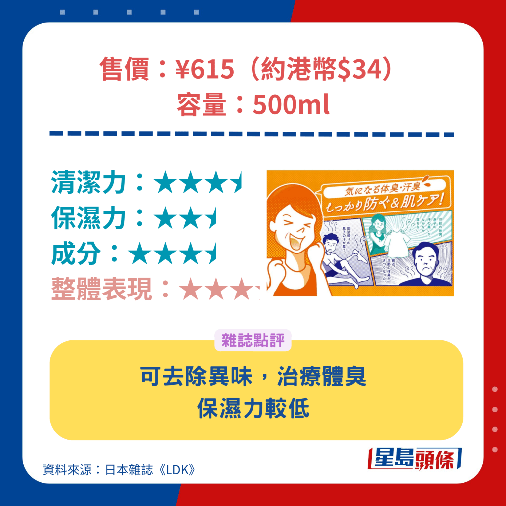 日本知名家品雜志《LDK》就清潔力、保濕力以及成分3大評分準(zhǔn)則,評測巿面上17款平價沐浴露。
