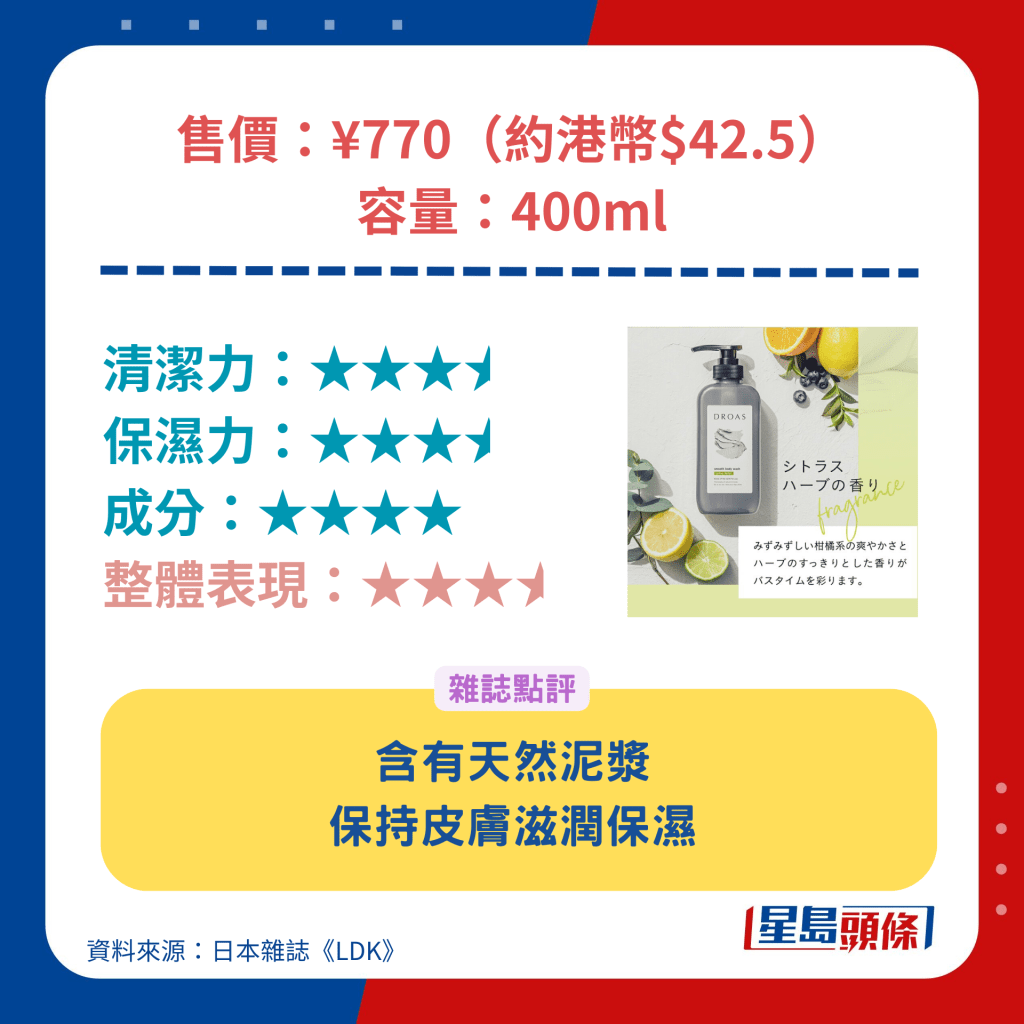 DROAS 天然泥礦物質(zhì)保濕沐浴露。