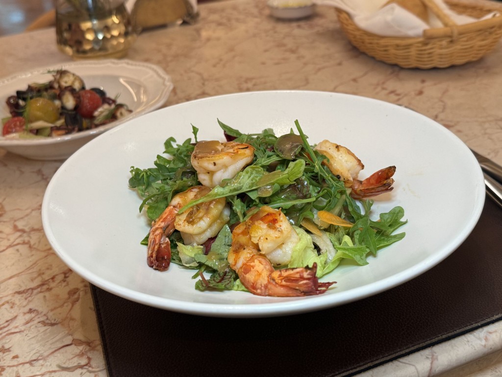 ▲虎蝦火箭菜沙律配芥末蜜桃汁