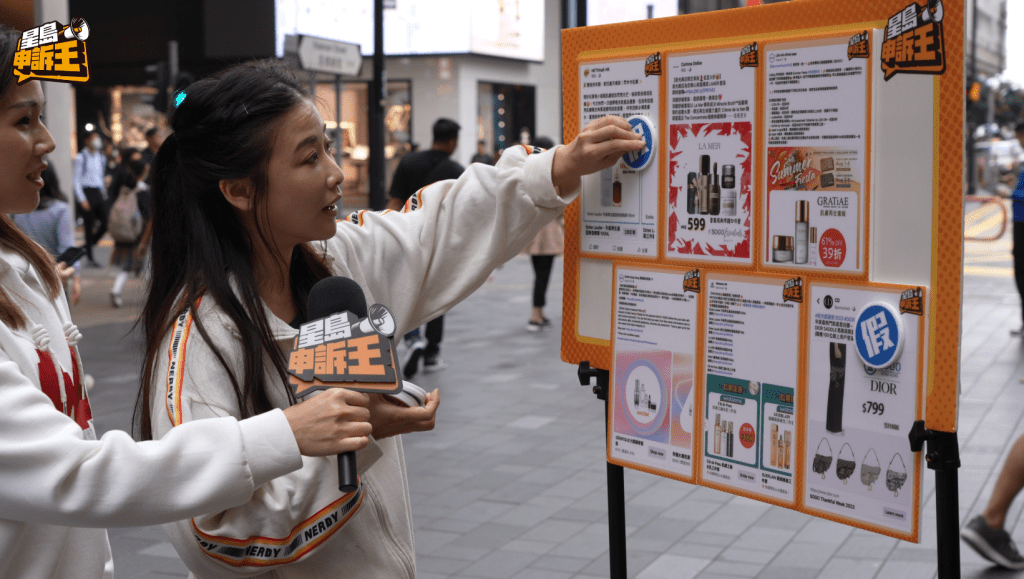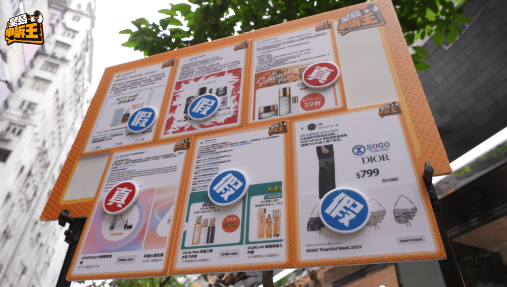 ▲《星島申訴王》準備了六個真假專頁截圖,在街頭實測,讓市民挑戰(zhàn)一下分真假。