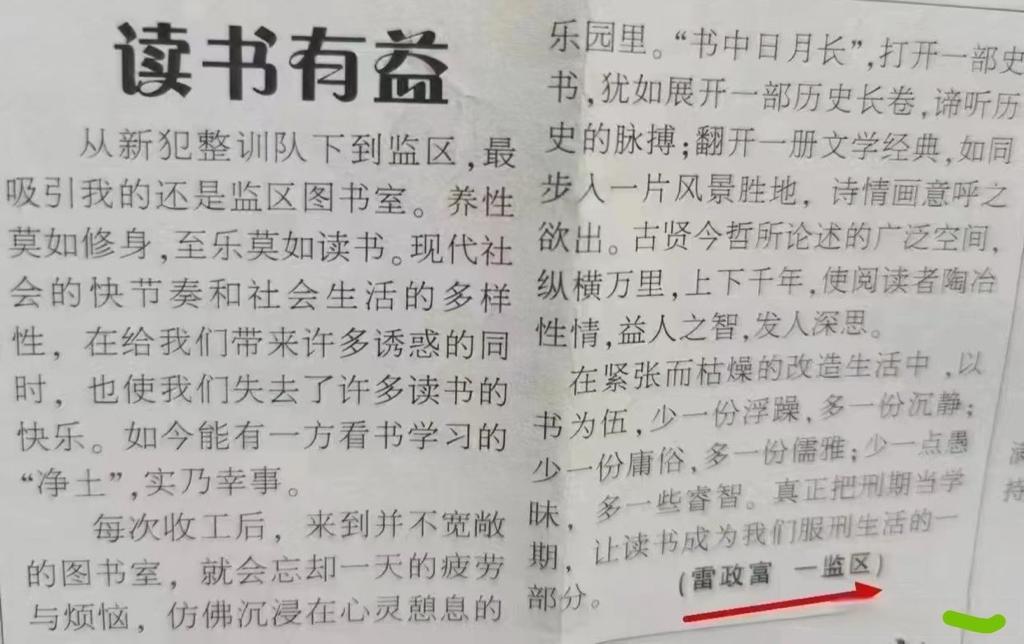 雷政富獄中撰文:刑期當(dāng)學(xué)期