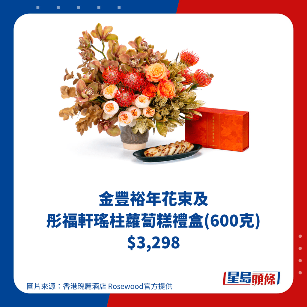 香港瑰麗酒店Rosewood早前榮獲2023年“全球 50 最佳酒店”評選為亞洲最佳酒店,適逢今年龍年,酒店內(nèi)的米其林推薦粵菜餐廳彤福軒,推出經(jīng)典口味傳統(tǒng)糕點(diǎn),包括彤福軒瑤柱蘿卜糕及椰汁年糕,更配上花束及一級普洱作新年禮盒,共12個禮盒供選擇,所有賀年糕點(diǎn)系列均可于香港瑰麗酒店及其網(wǎng)上商店預(yù)訂,訂購滿額即可免費(fèi)送貨, 各位不妨送給親朋好友,絕對夠體面!