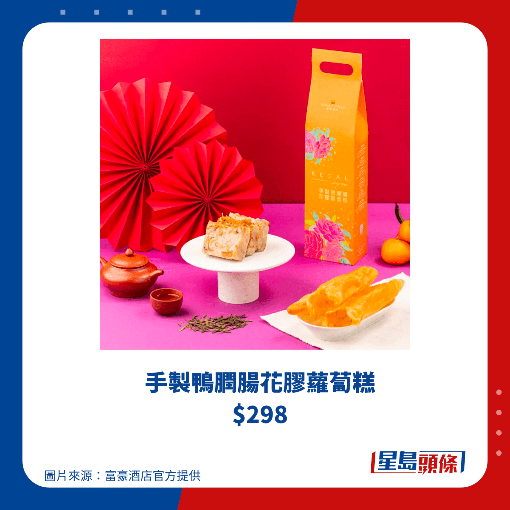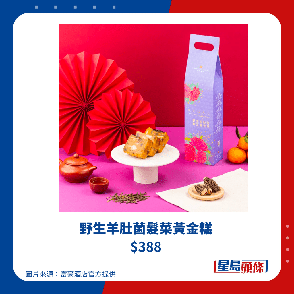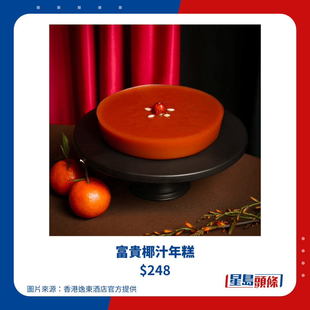 帝港酒店集團(tuán)旗下共有四間酒店,包括帝都酒店、帝景酒店、帝逸酒店及帝京酒店,今個新年除了推出他們多年來的經(jīng)典瑤柱臘味蘿卜糕、桂圓金箔棗皇糕、芋頭糕之外,更全新推出陳皮桃膠吉士玫瑰糕,選用遠(yuǎn)年陳皮,配以“平民燕窩”桃膠,適合一眾女士養(yǎng)顏補(bǔ)身,于2024年1月12日或之前訂購賀年糕點(diǎn),更可享85折優(yōu)惠,送禮自用也不錯。