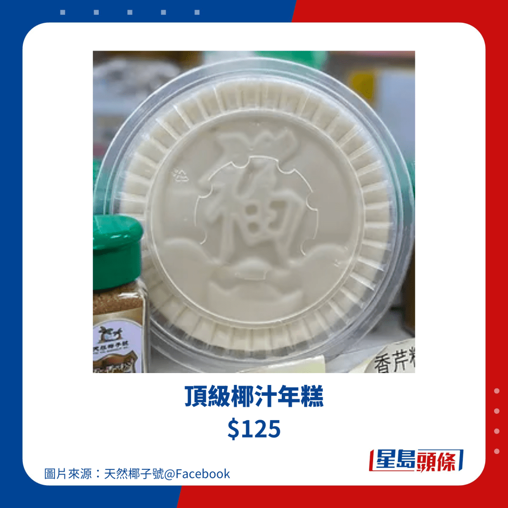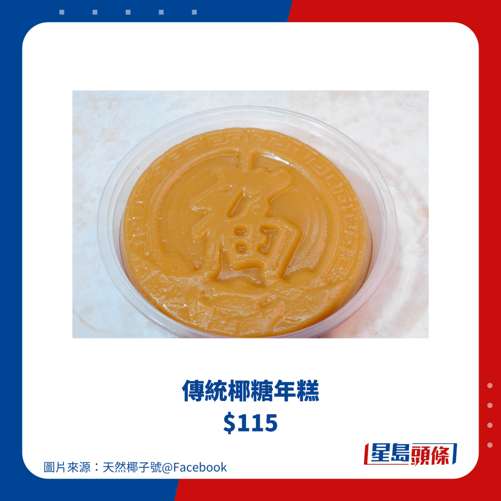 天然椰子號于1964年立店至今,選用馬來西亞及泰國出產(chǎn)的椰子,堅持用新鮮椰汁制作糕點(diǎn),其招牌椰汁年糕100%全人手制,采用新鮮即開的椰子水制作,味道天然清甜而口感,完全沒有加入防腐劑,但由于功夫繁多,小店每年供應(yīng)有限,因所以農(nóng)歷新年兩星期前才開始發(fā)售,每年也惹來不少港人紛紛搶購, 而天然椰子號官方網(wǎng)站于12月宣布可以開始預(yù)訂2024年各款年糕,各位要留意訂購詳情!