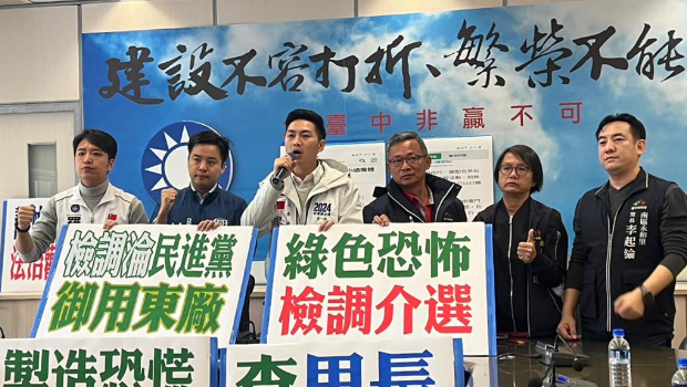 臺中地檢署偵辦“境外勢力介選”,國民黨臺中“立委”候選人羅廷瑋、廖偉翔、林家興1月4日陪同3位里長開記者會,3位里長表示,去年跟團(tuán)到廈門旅游,這兩天卻突然被約談,過程被當(dāng)作嫌疑犯,令人非常不舒服。3位候選人痛批是“綠色恐怖”,搞得里長們?nèi)诵幕袒獭?/span>