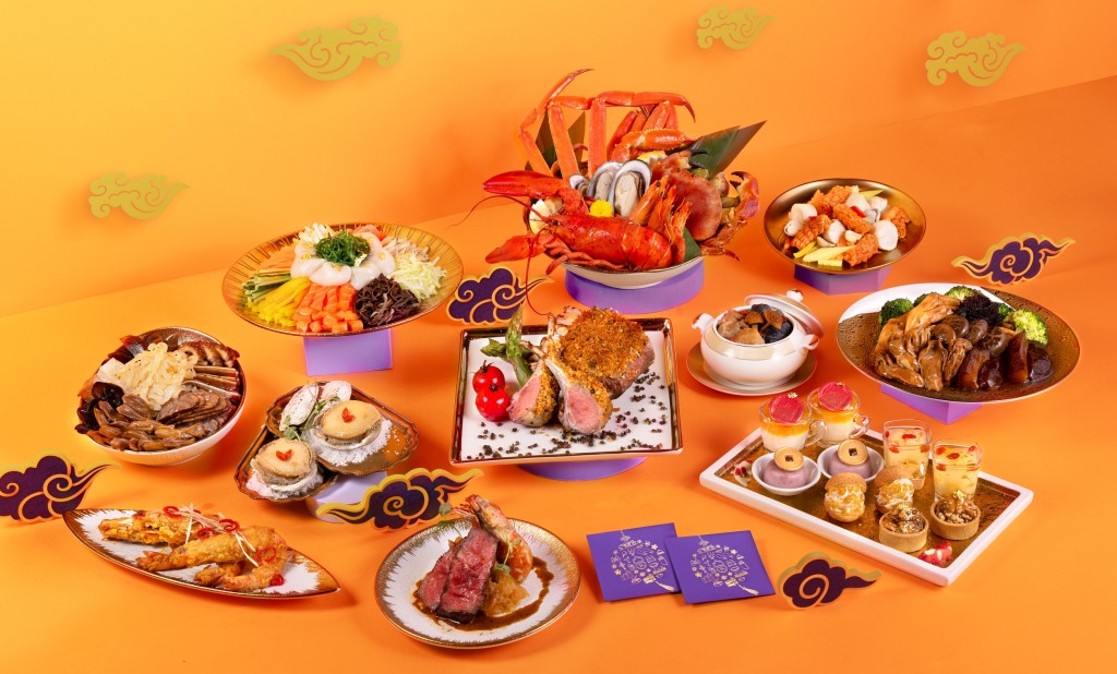 2 月 9 - 14 日限定“飛躍龍騰自助午餐”提供“風(fēng)生水起”三文魚、帶子及油甘魚撈起沙律、“盤滿缽滿”聚寶盆中式鹵水拼盤、“鴻運當(dāng)頭”燒乳豬、“發(fā)財好市”海參發(fā)菜蠔豉炆鴨掌、“橫財就手”甜醋豬腳姜、蟹肉羊肚菌粥及賀年甜品。而“飛躍龍騰自助晚餐”更有新鮮蒸焗龍蝦、酒醉鮮鮑魚、姬松茸元貝螺頭竹絲雞燉湯等,祝一家大小好運年年。