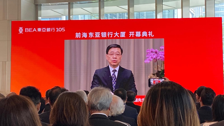 ▲特首李家超表示,港府重視鞏固發(fā)揮銀行優(yōu)勢(shì),而由銀行傳統(tǒng)業(yè)務(wù)至綠色金融人才,均對(duì)大灣區(qū)發(fā)展作出積極貢獻(xiàn)。是次東亞前海落成新大廈,除了提供辦公室空間,亦展現(xiàn)出推動(dòng)金融科技的決心,并為國(guó)家高水平發(fā)展貢獻(xiàn)。