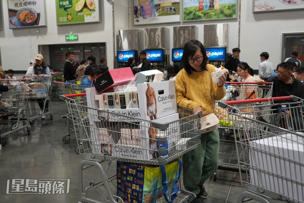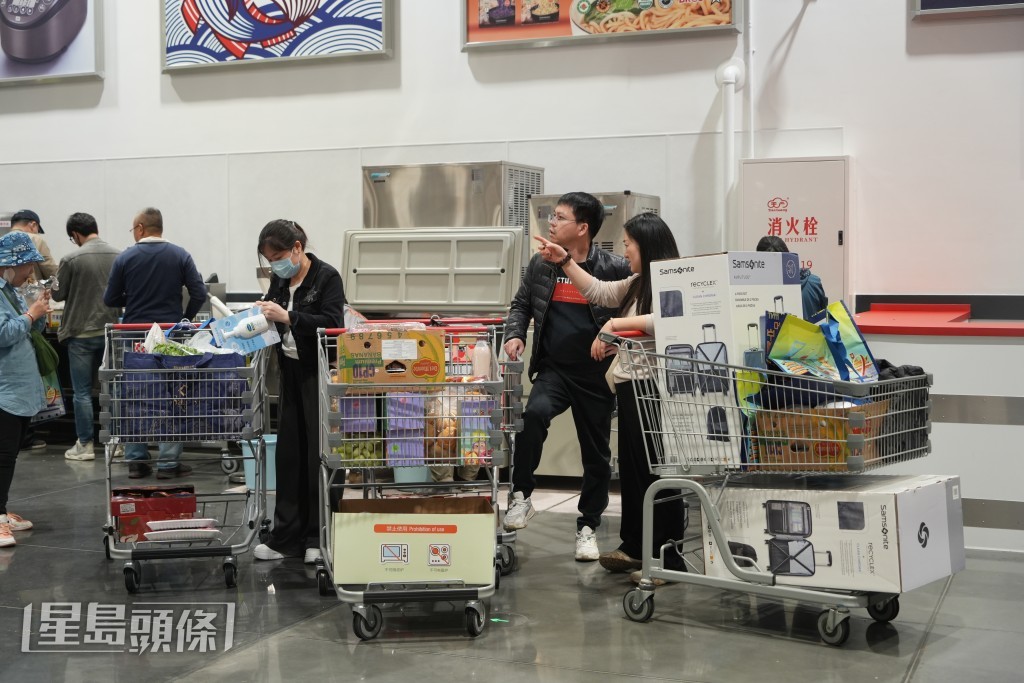 開(kāi)市客在下午約4時(shí)左右仍然人山人海,雖然貨架之間的通道十分寬敞,可以容納3架購(gòu)物車,但由于人流及購(gòu)物車比較大,不時(shí)“塞車”,排隊(duì)付款也偶現(xiàn)人龍。記者在場(chǎng)所見(jiàn),不少市民的購(gòu)物車都已塞爆,購(gòu)買的貨品琳瑯滿目,有食品、零食等,但幾乎所有人的購(gòu)物車上也有一盒12個(gè)、原價(jià)$47.9特價(jià)$35.9的牛角包,以及$99的草苺。