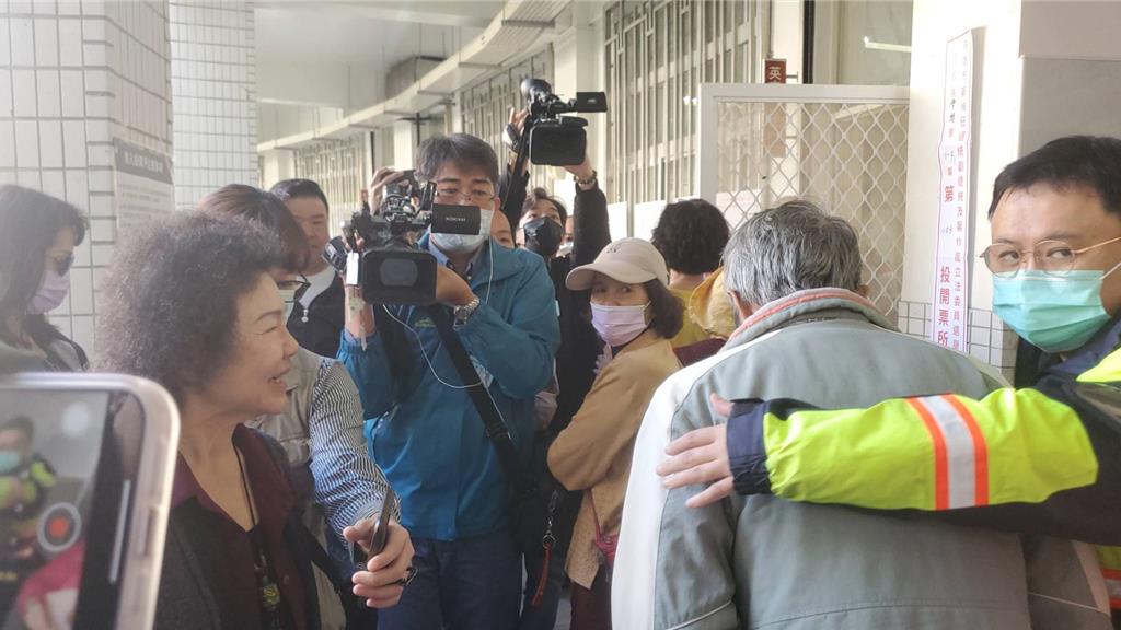 10:35 “監(jiān)察院長(zhǎng)”陳菊13日上午到高雄新上小學(xué)投票,陳菊投完票后走出圈票處,親切地與擦身而過的民眾互道早安,突然,一名男子突然近距離對(duì)著陳菊怒嗆“去死一死”,隨即遭一旁警察安撫攔下,陳菊也僅以笑容回應(yīng)。
