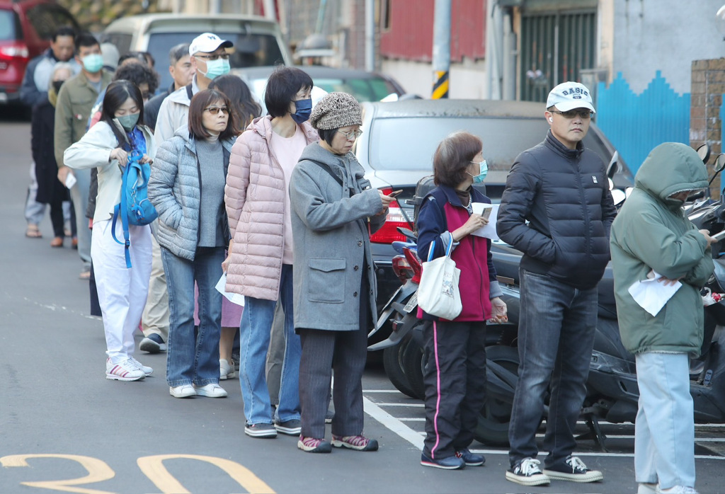 ▲臺(tái)灣大選13日舉行,民眾投票意愿度高。圖為新北市一處投票站大排長(zhǎng)龍。中央社