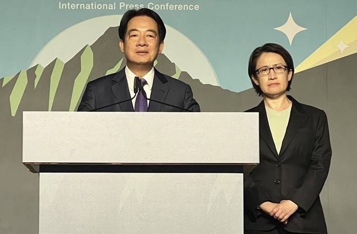 ▲賴清德、蕭美琴召開勝選記者會(huì)。