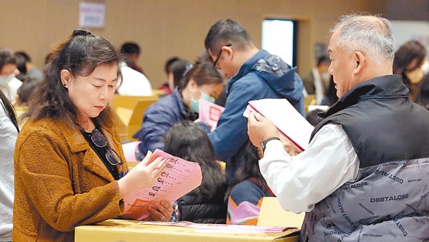 ▲大選13日登場,臺北市信義區(qū)的投開票所主管主監(jiān)12日齊聚一堂點領(lǐng)選票。