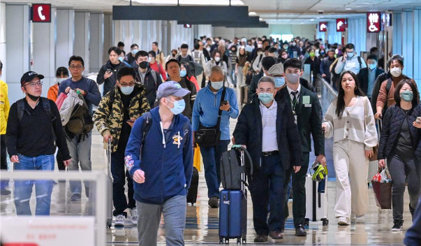 臺(tái)灣大選 |桃園機(jī)場(chǎng)涌臺(tái)商返鄉(xiāng)投票人潮,雙鐵運(yùn)量超2020