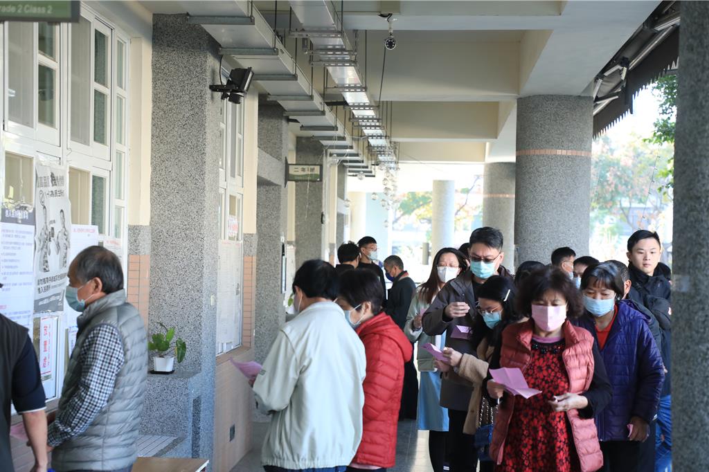 ▲臺中市健行小學(xué)投開票所以早涌入投票人潮。