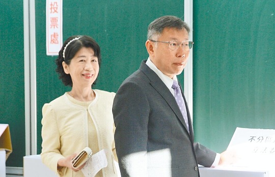 ▲圖為柯文哲(右)和妻子陳佩琪(左)13日前往投票。