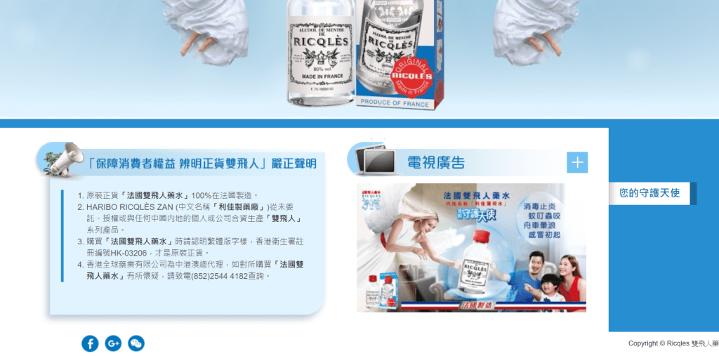 ▲法國雙飛人藥水官網(wǎng)亦刊出澄清聲明,表示沒有在內(nèi)地以“雙飛人”之名售賣正牌產(chǎn)品。