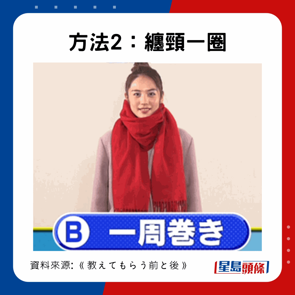 專家指出,頸巾要纏頸幾圈,還是交叉重疊,保暖效果也不一樣。想留住暖空氣,可嘗試以上做法,令頸部更溫暖,以令全身保持暖和。