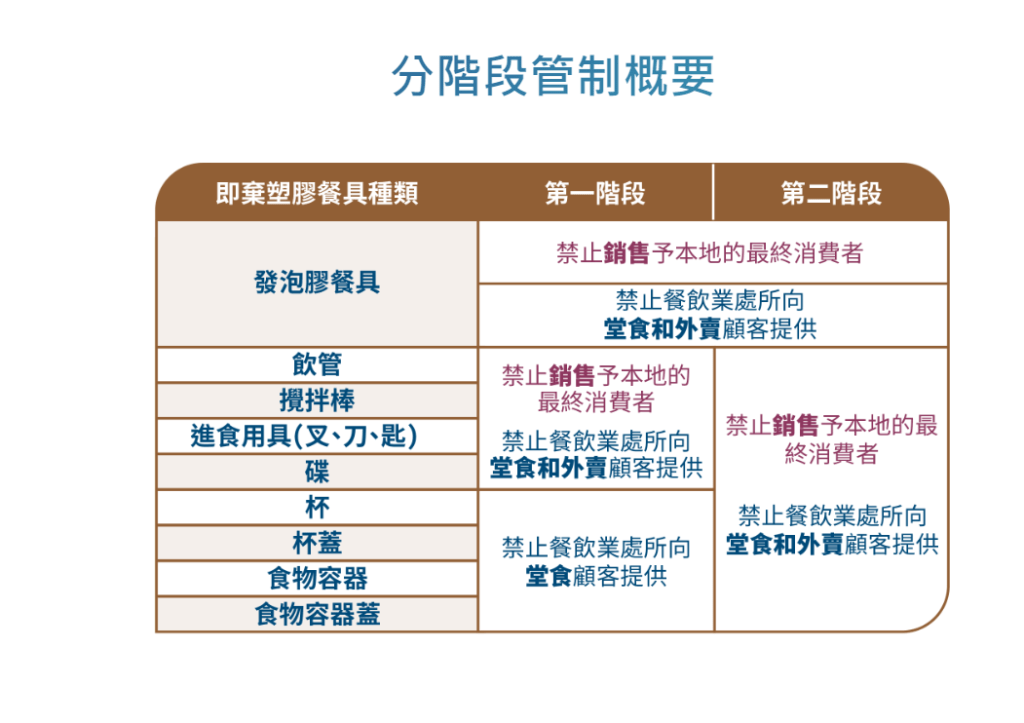在4月22日實(shí)施的第一階段,發(fā)泡膠餐具,塑膠飲管、攪拌棒及膠餐具(叉、刀、湯匙、碟)均禁止在本地銷售,同時(shí)餐飲處所亦不能向堂食及外賣顧客提供。