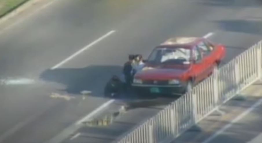 不懂駕駛的田明建,攜搶挾持駛經(jīng)的一輛車,威脅司機(jī)前往天安門廣場。但汽車駛至建國門立交橋北京使館區(qū)附近,司機(jī)趁轉(zhuǎn)紅燈時突然將車撞上路旁大樹后跳車逃走,但遭田明建開槍擊倒。
