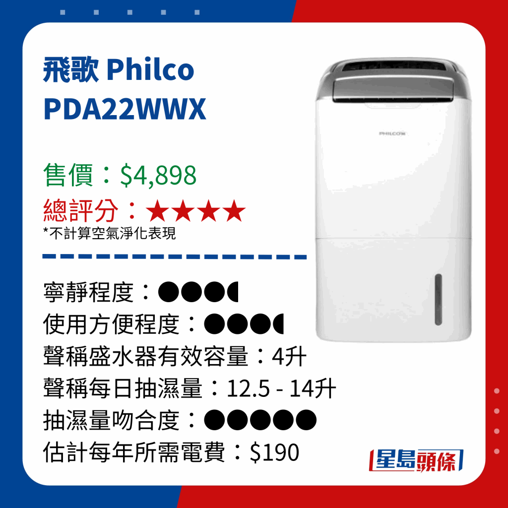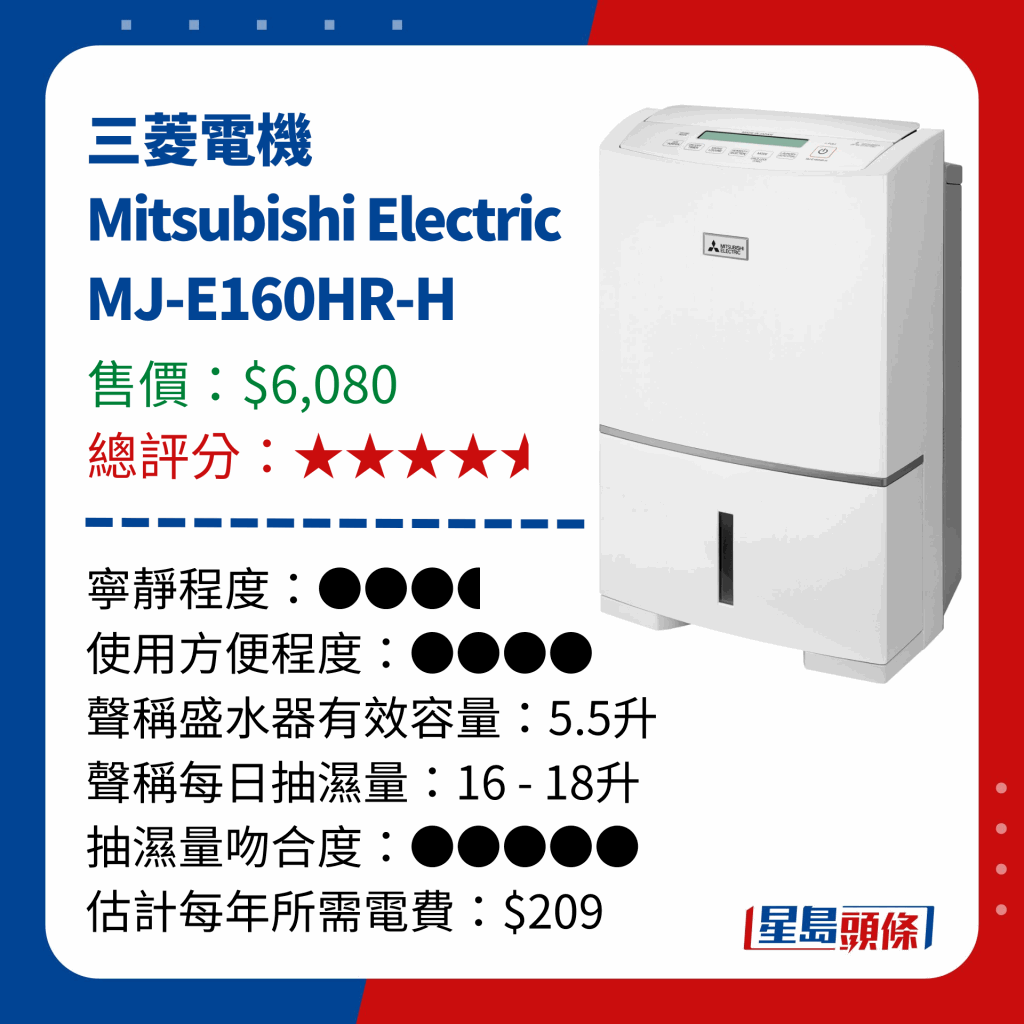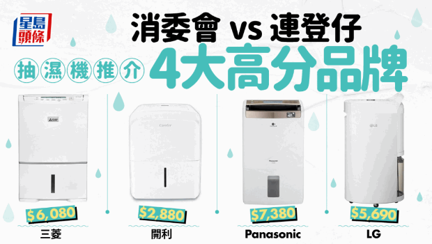 消委會2023年初曾測試了市面10款抽濕機及4款二合一空氣凈化抽濕機,售價由$2,099 - $6,080不等,當中8款抽濕機獲得總評分4星或以上(5星滿分),在抽濕量、使用方便程度及寧靜程度均有不俗表現(xiàn)。 其中三菱電機及LG的表現(xiàn)最為出色,獲得4.5星高評分,抽濕量達每日16-18升,不過兩款抽濕機的售價亦相對較高。
