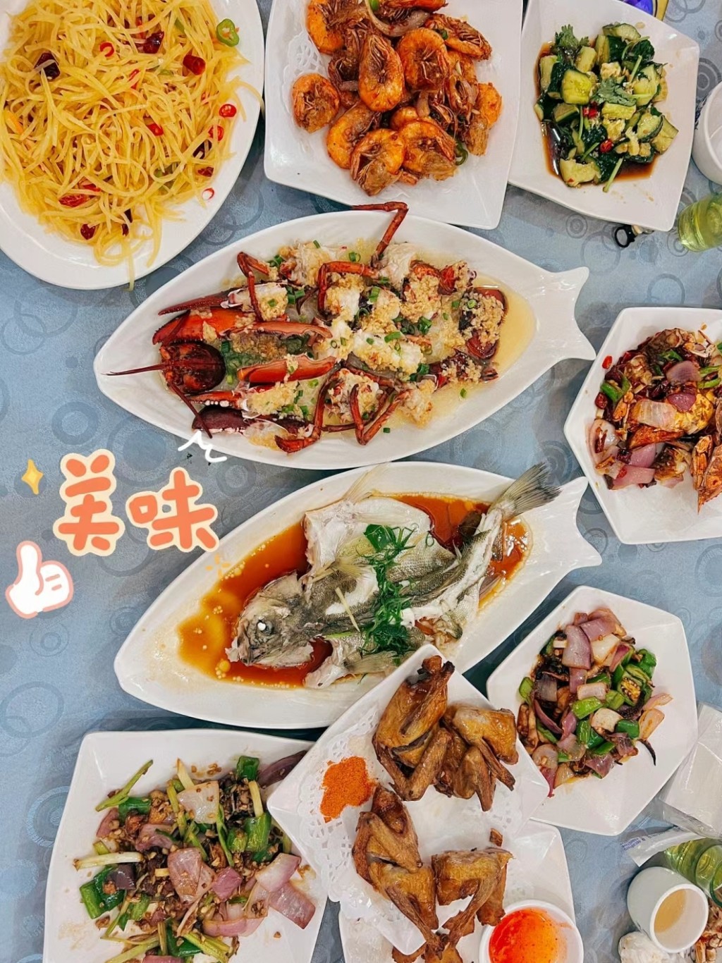 珠海漁洋鮮海鮮大排檔距離長隆海洋王國很近,很多人在樂園玩完,就出來吃晚飯,這店有包廂、散座,人均約¥100。網紅打卡美食有波士頓龍蝦,必吃海鮮砂鍋粥,橫琴蠔、椒鹽瀨尿蝦。其他美食有小炒、素菜、清蒸排骨、鐵板田雞、椒鹽蒜香肉等。