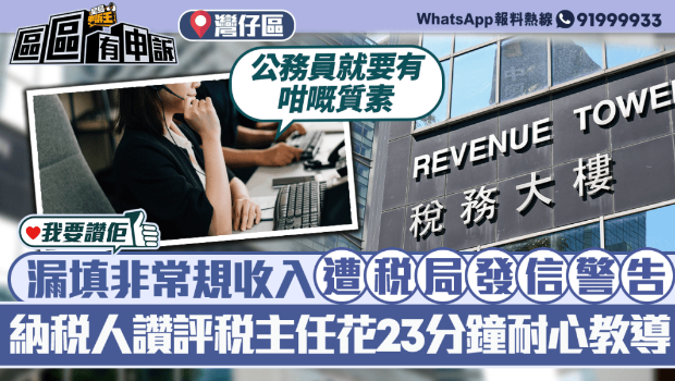 我要贊佢?| 漏填非常規(guī)收入遭稅局發(fā)信警告,納稅人贊評稅主任花23分鐘教導(dǎo)處理方案