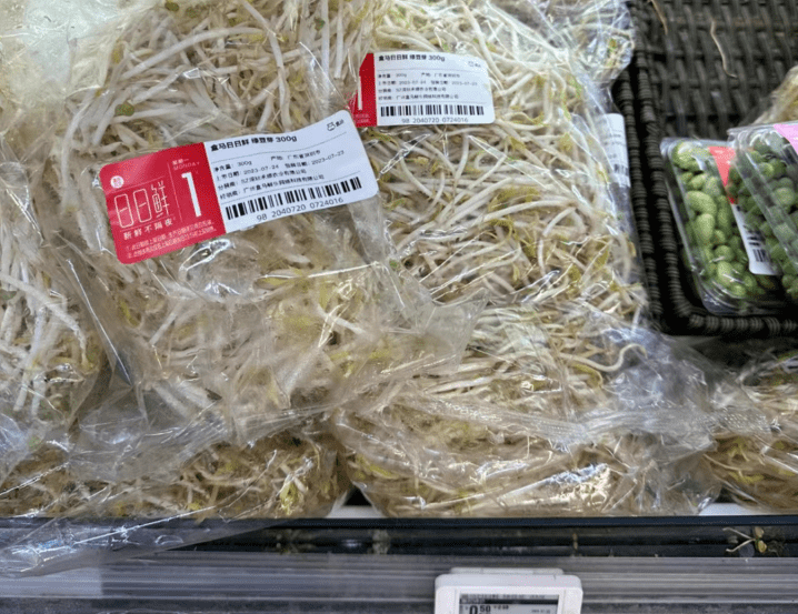 深圳盒馬·生鮮奧萊貨品激平12. 1袋300克綠豆芽只售¥0.5。