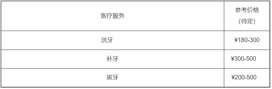 牙科門診收費:第一次 ¥664起、其后 ¥440起