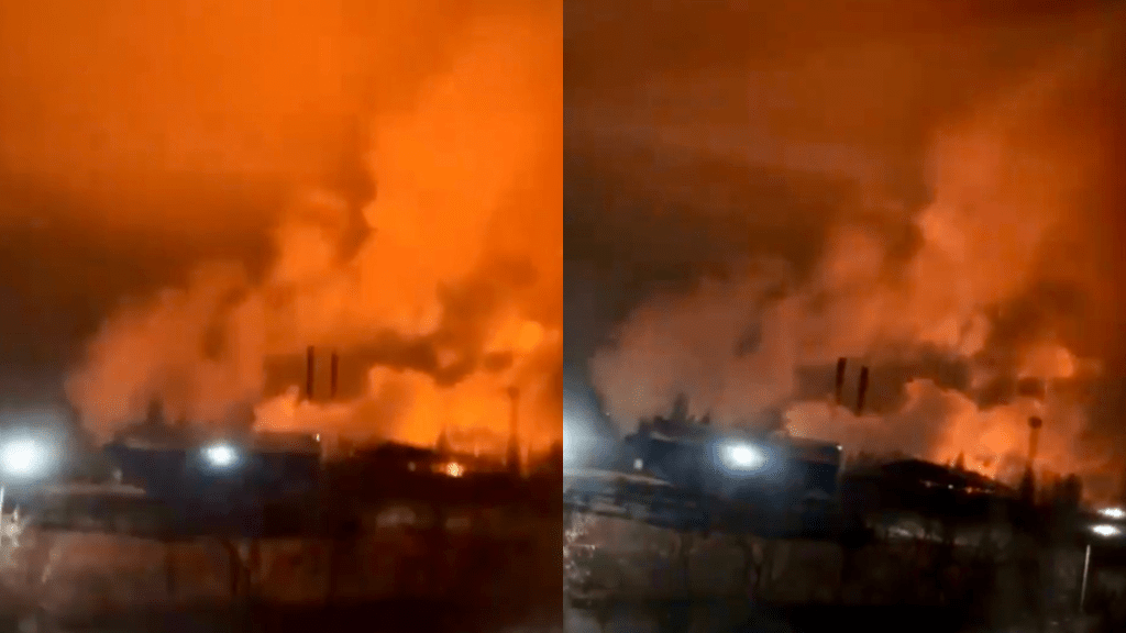 網(wǎng)傳影片顯示,工廠發(fā)生爆炸,巨大的橙色火焰照亮了夜空。路透社報道,新利佩茨克鋼鐵公司(Novolipetsk Steel, 簡稱NLMK)是俄羅斯四大鋼鐵公司之一。