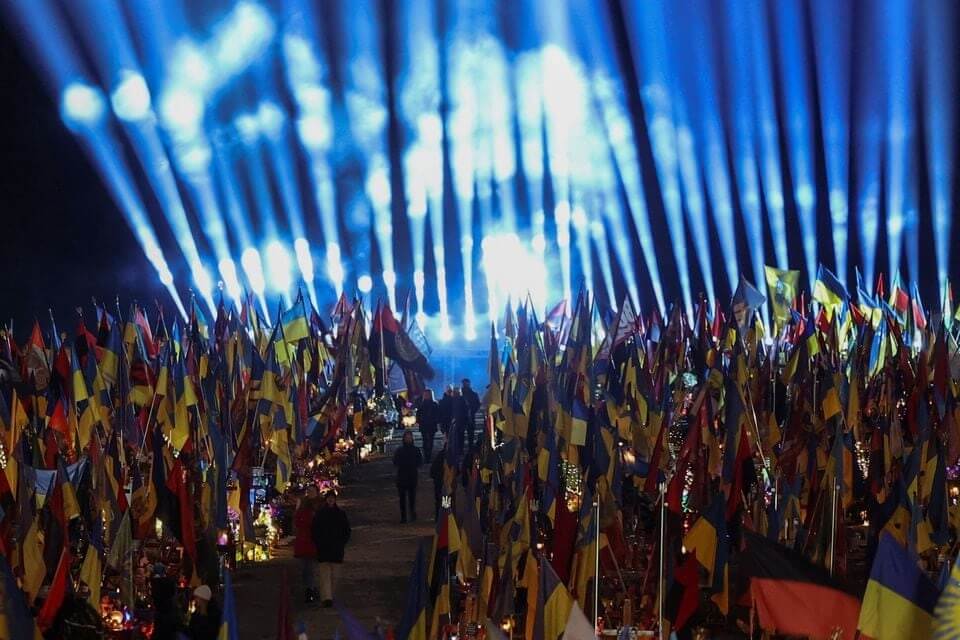 ▲圖為烏克蘭民眾23日前往軍人公墓,祭拜在俄烏戰(zhàn)爭(zhēng)中殉職的親人。 路透社