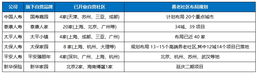 現(xiàn)在先簡(jiǎn)單總結(jié)一下已開(kāi)業(yè)自營(yíng)社區(qū)的6家大型保險(xiǎn)公司現(xiàn)狀。
